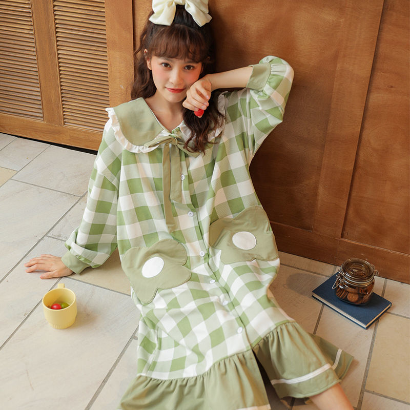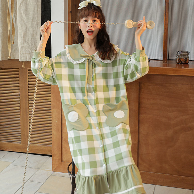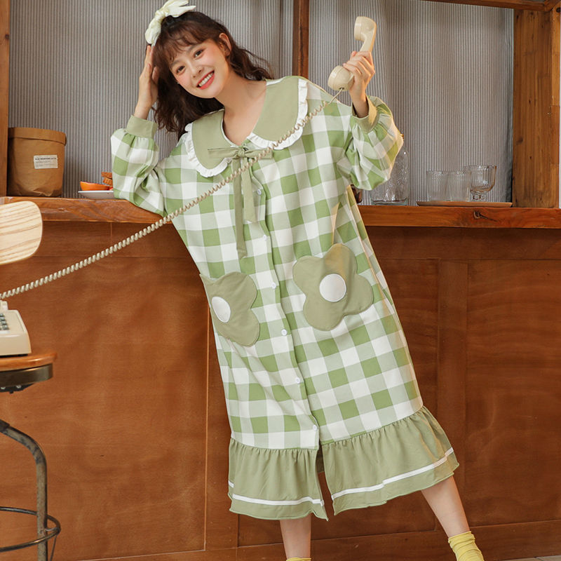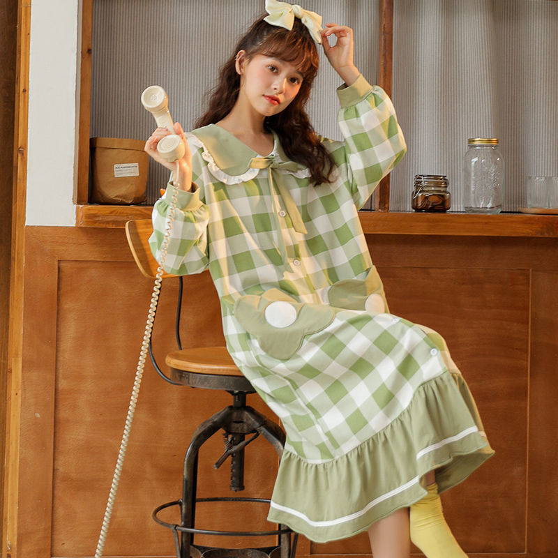 Nightdress women's spring and autumn cotton long-sleeved new year palace princess style sweet pajamas women's long skirt home service