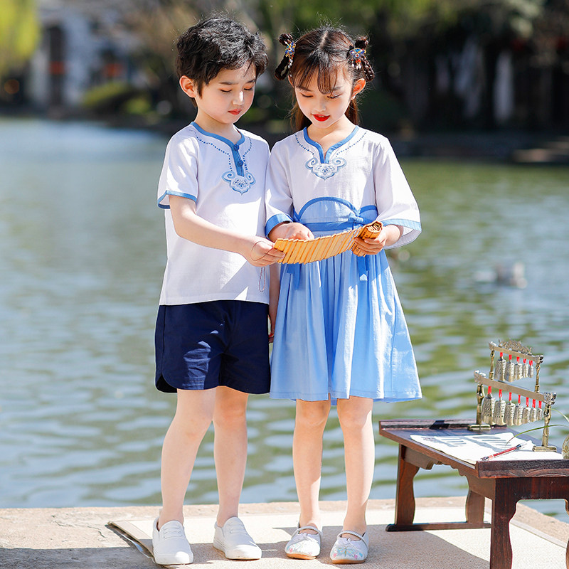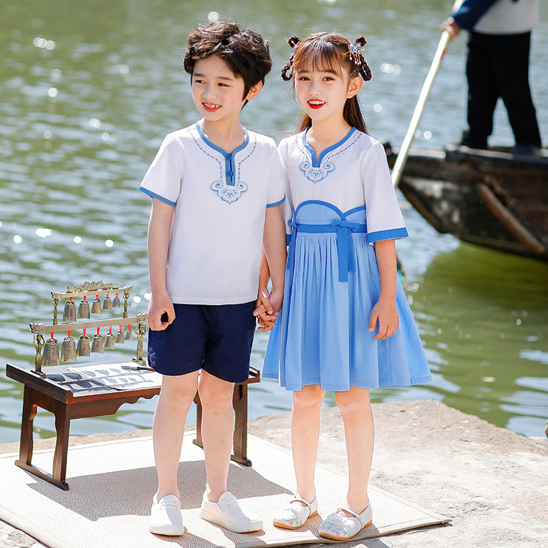 Primary school uniforms summer clothes kindergarten uniforms children's class uniforms retro Chinese style Hanfu Liuyi chorus performance clothes