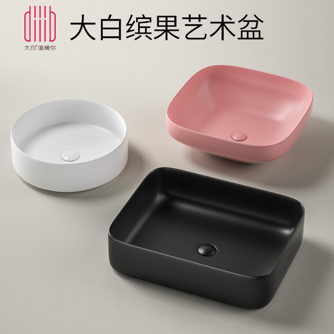 White glossy surface Square countertop basin black matte Square countertop basin blue matte Square countertop basin pink matte Square countertop basin white glossy Round countertop basin black matte Round countertop basin