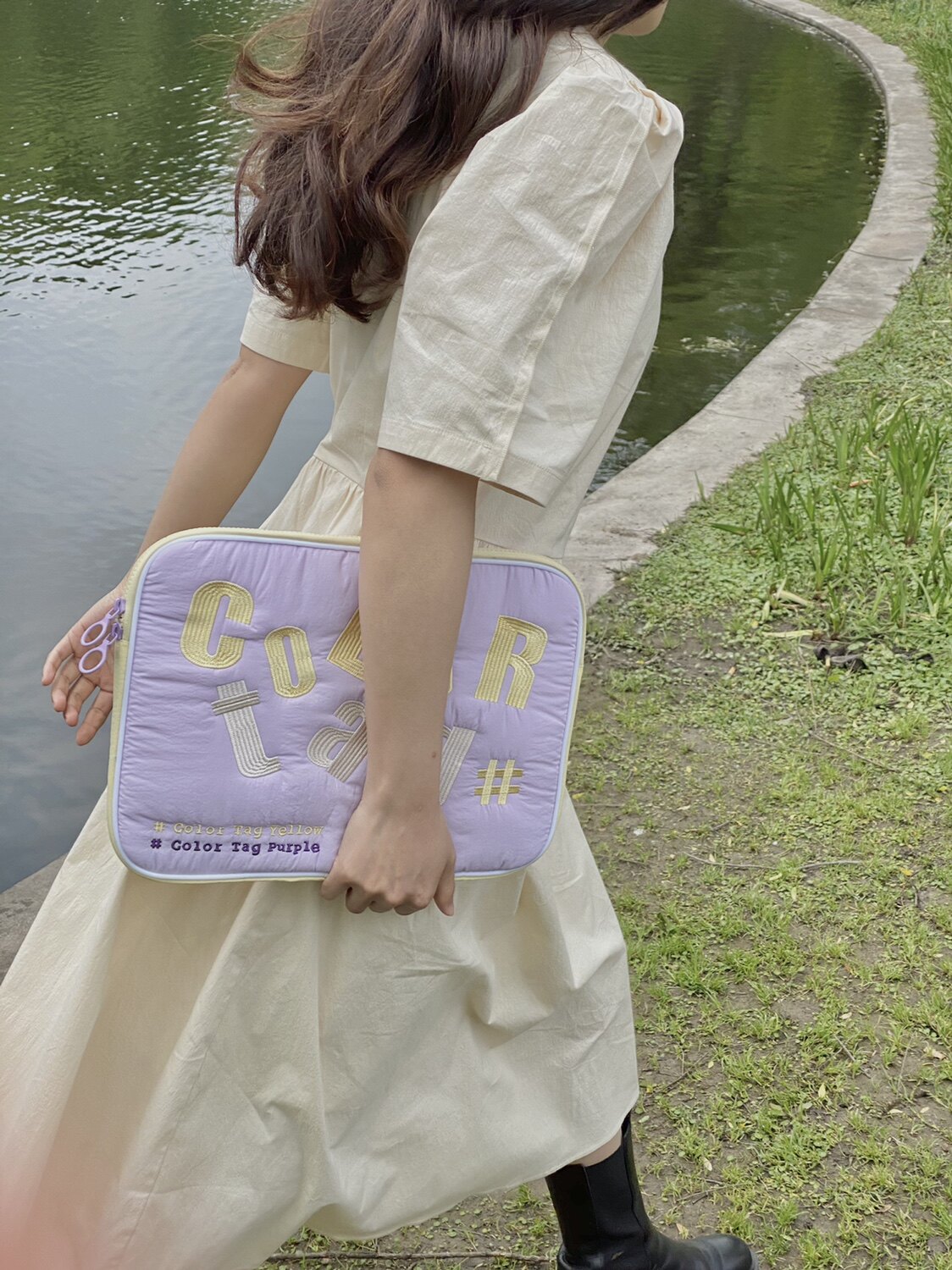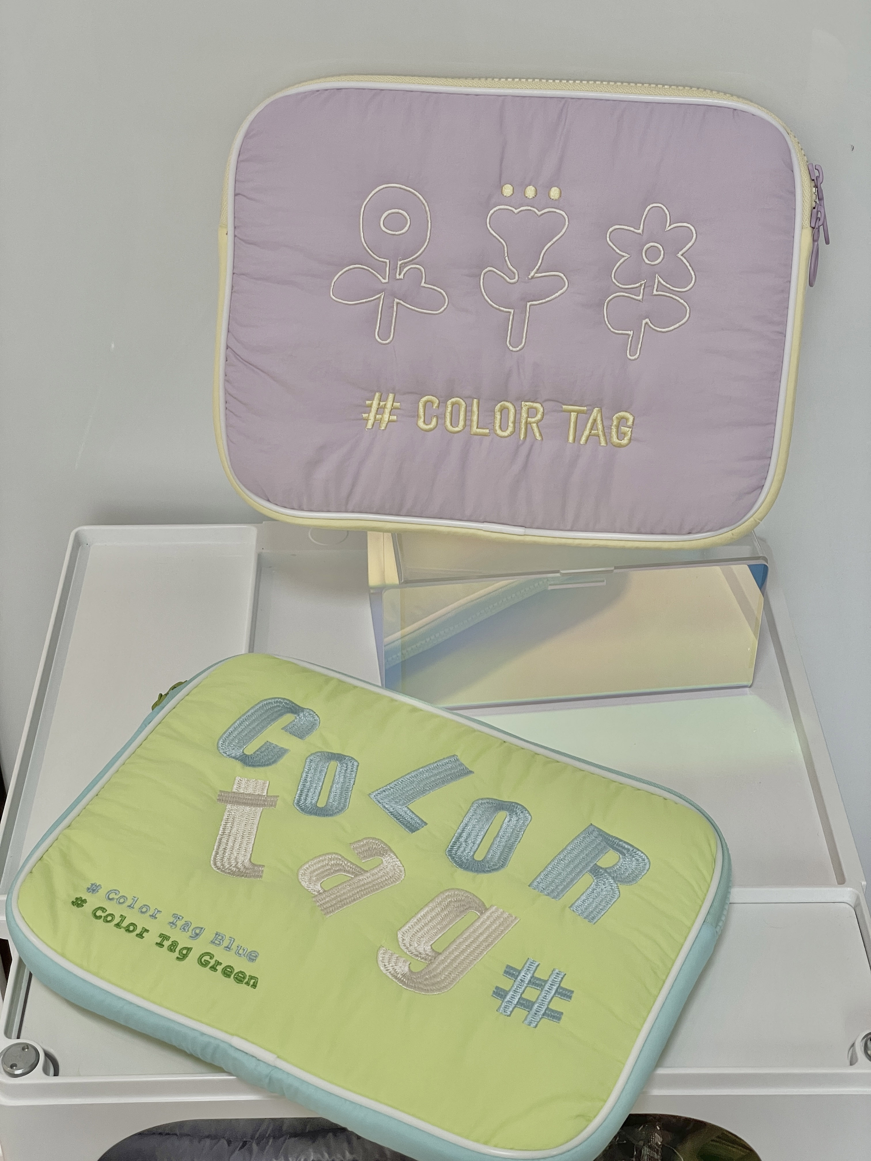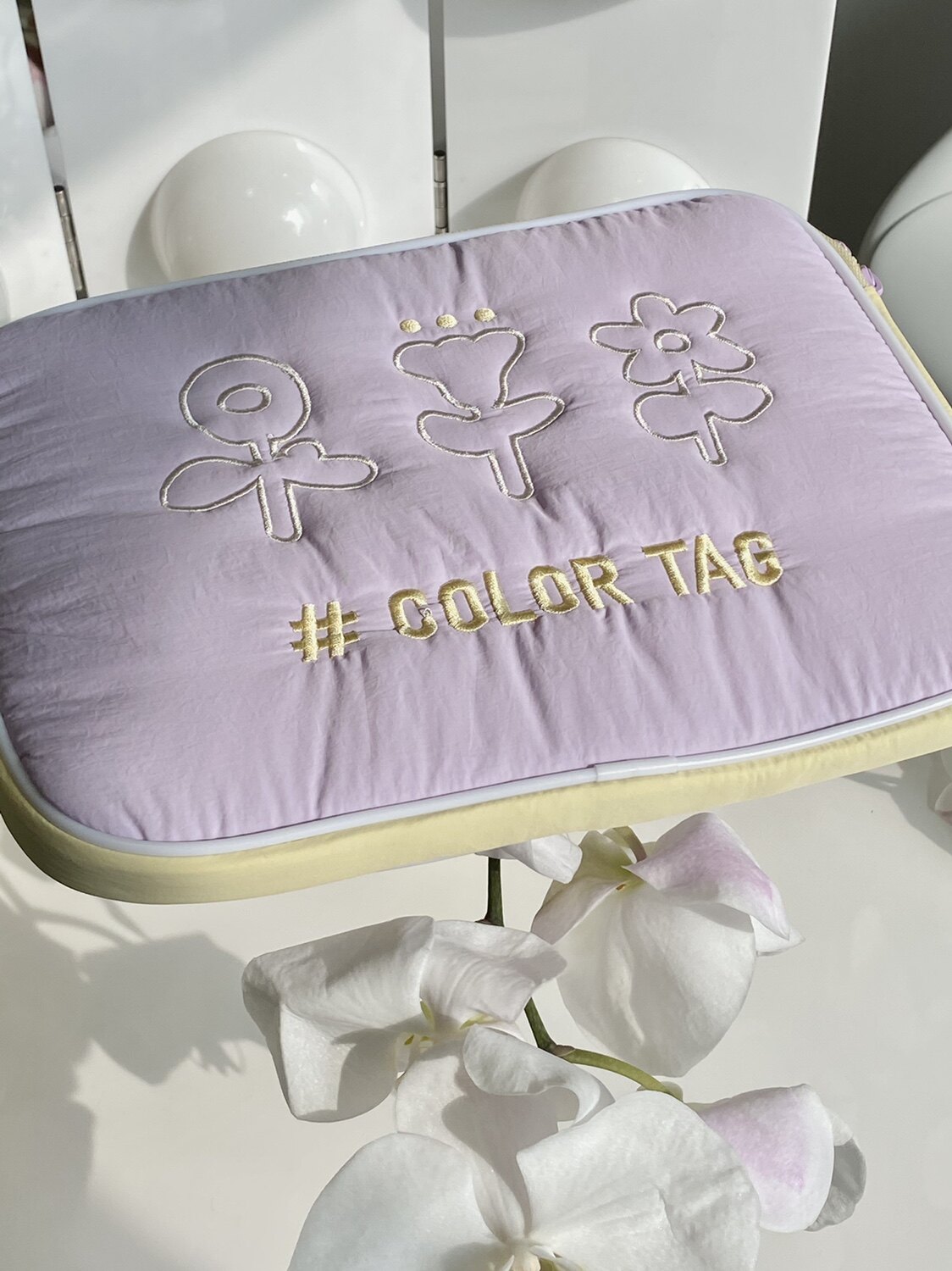 COLOR TAG computer package (soft stretches) original double-sided quilted flowers embroidered spring and summer iPad bag containing