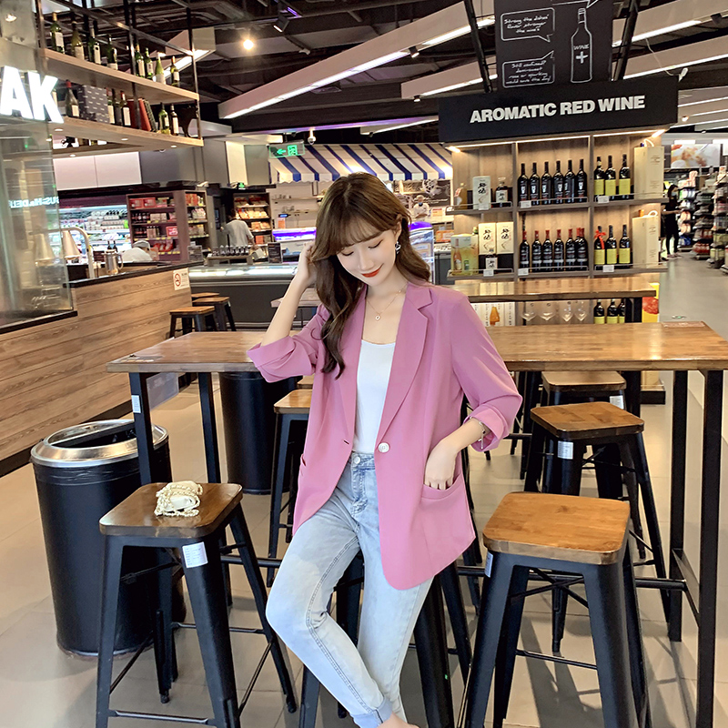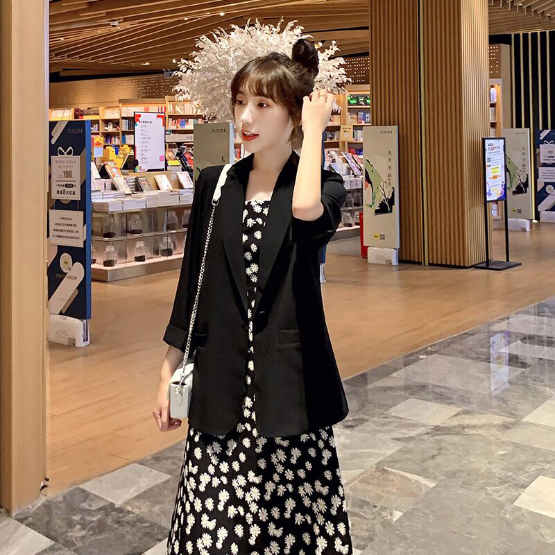 Internet celebrity fashion thin section loose mid-length small suit women 2022 spring and summer new casual three-quarter sleeve suit jacket