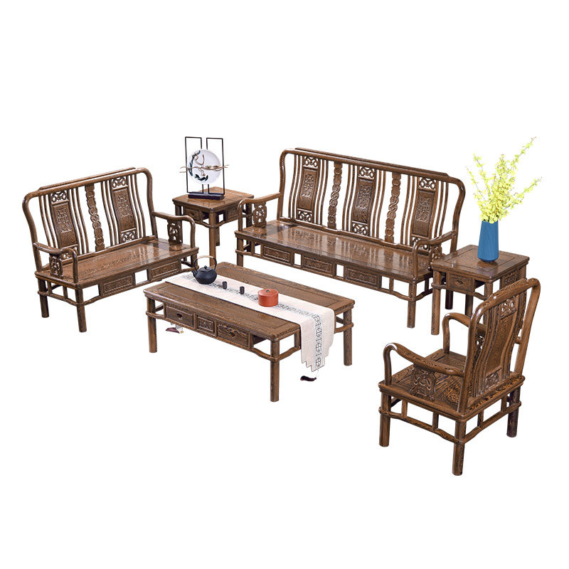 Chicken wing wood sofa new Chinese style living room coffee table combination antique Ming and Qing small apartment six-piece sofa coffee table combination