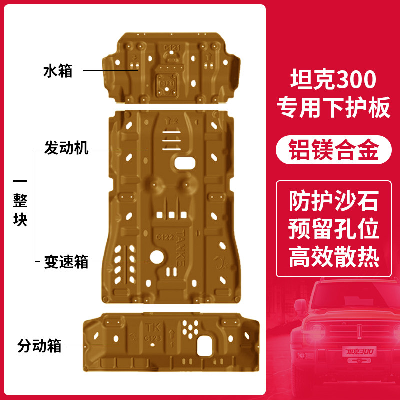 Tank 300 water tank guard plate (magnesium aluminum alloy) thickness 4.3mm Tank 300 engine + transmission guard plate (magnesium aluminum alloy) Tank 300 transfer case guard plate (magnesium aluminum alloy) thickness 4.3mm Tank 300 tank (magnesium aluminum alloy) thickness 4.3mm Water tank + engine + transmission + transfer box + fuel tank (magnesium aluminum alloy) 4.3mm Tank 300 front bar under the protective plate Tubing guard plate (aluminum alloy) thickness 4.3MM Tank 300 special water tank guard plate (cold rolled steel) 3.5mm Tank 300 special engine + transmission guard plate (cold rolled steel) thickness 3.5mm Tank 300 special transfer case guard plate (cold rolled steel) Thickness 3.5mm Tank 300 special water tank + engine + transmission + transfer box (cold rolled steel 3-piece set) thickness 3.5mm