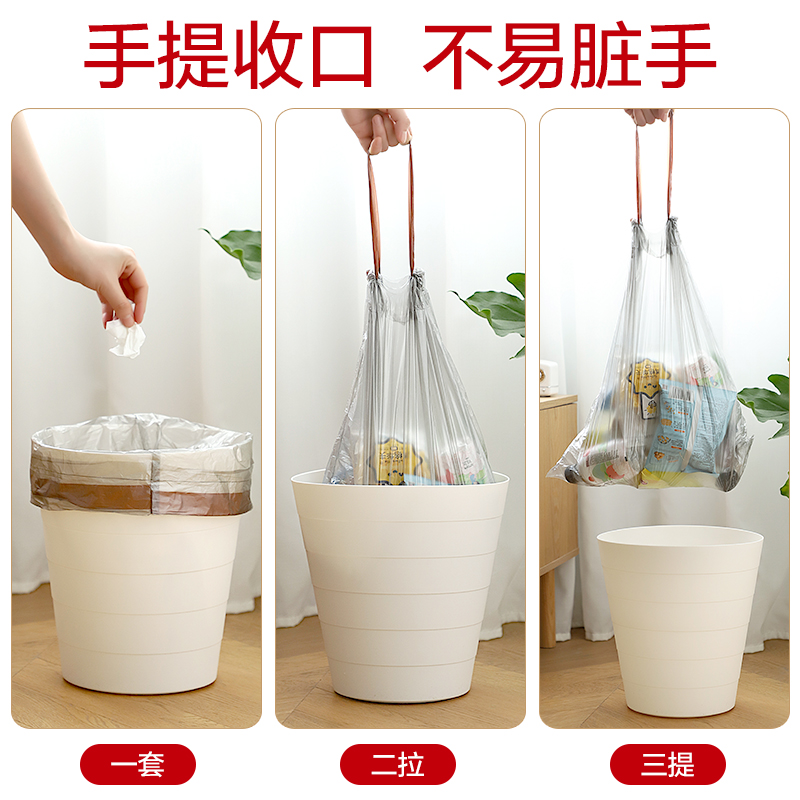 Drawing rope garbage bags Home thickened Automatic Closing Kitchen Vest Bins Black Large plastic bags-Taobao