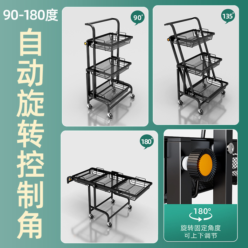 Rotating folding cart frame landing multi-layer household large-capacity kitchen multi-functional vegetable feeding shelves