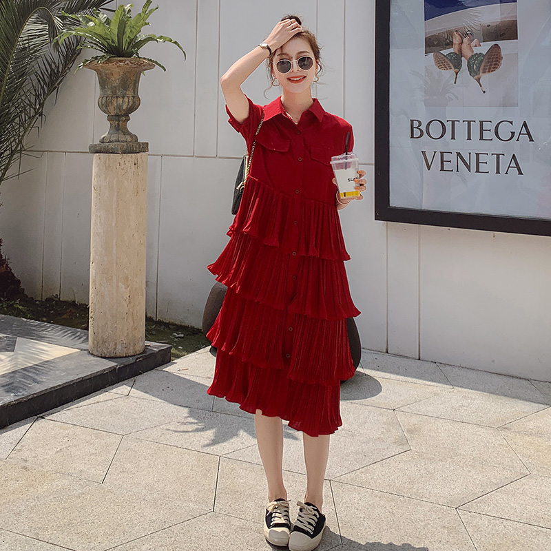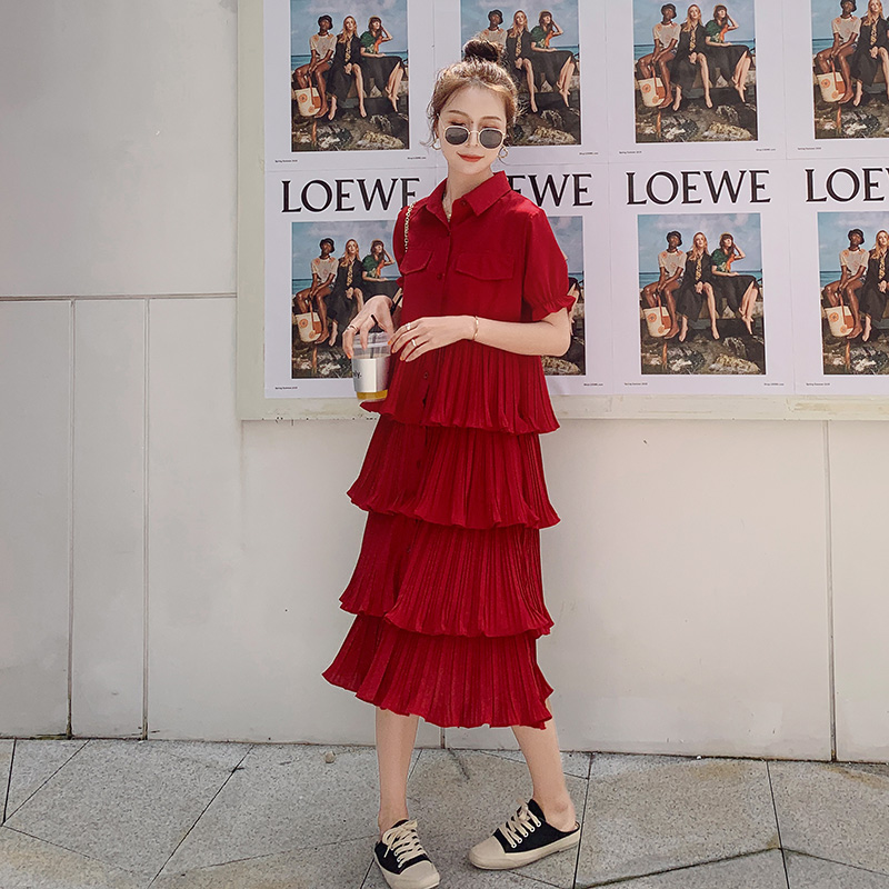 Wine red dress women's summer 2022 new small French bellflower first love skirt chiffon layered cake skirt