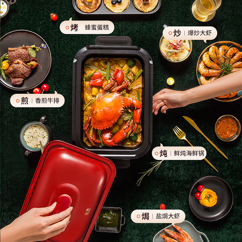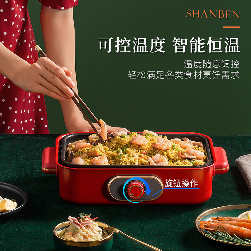 Yamamoto multi-function cooking pot barbecue boiler Net red pot one-piece household cooking fried stewed fried electric hot pot barbecue machine