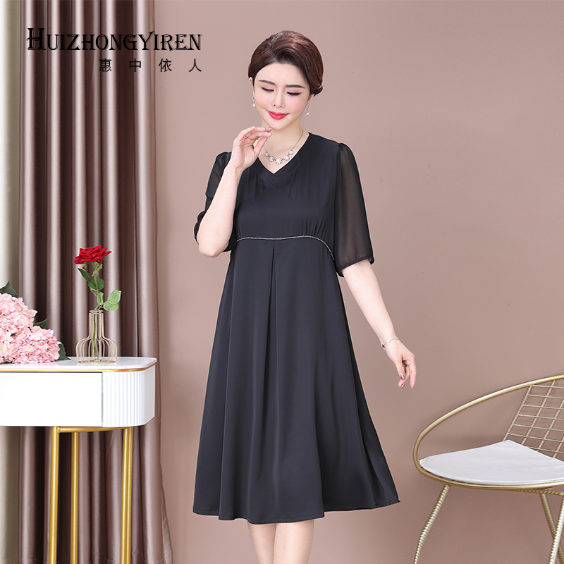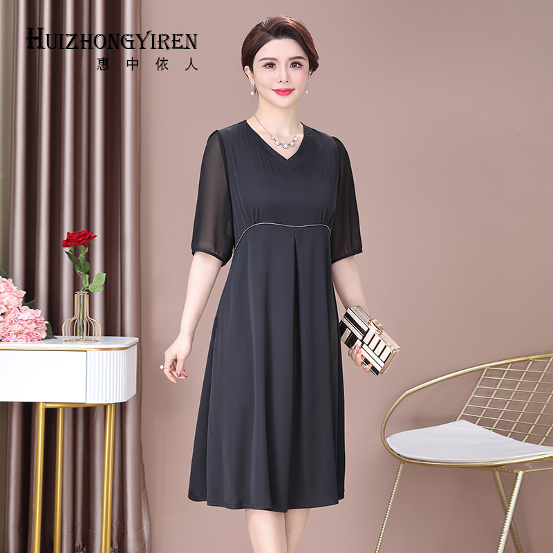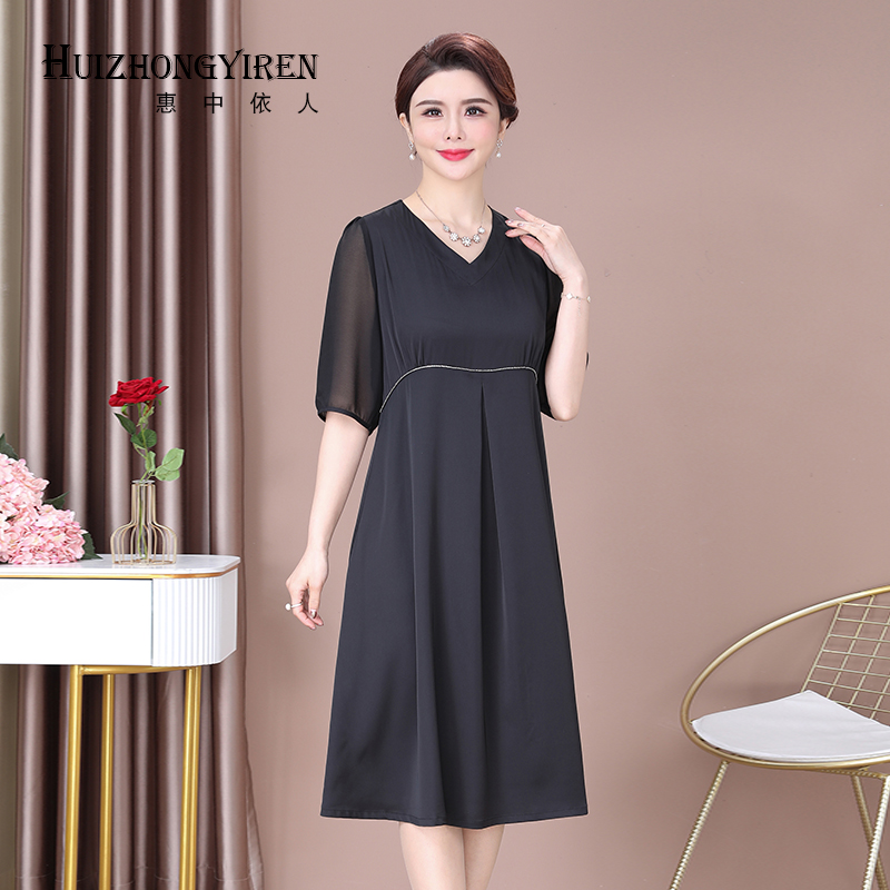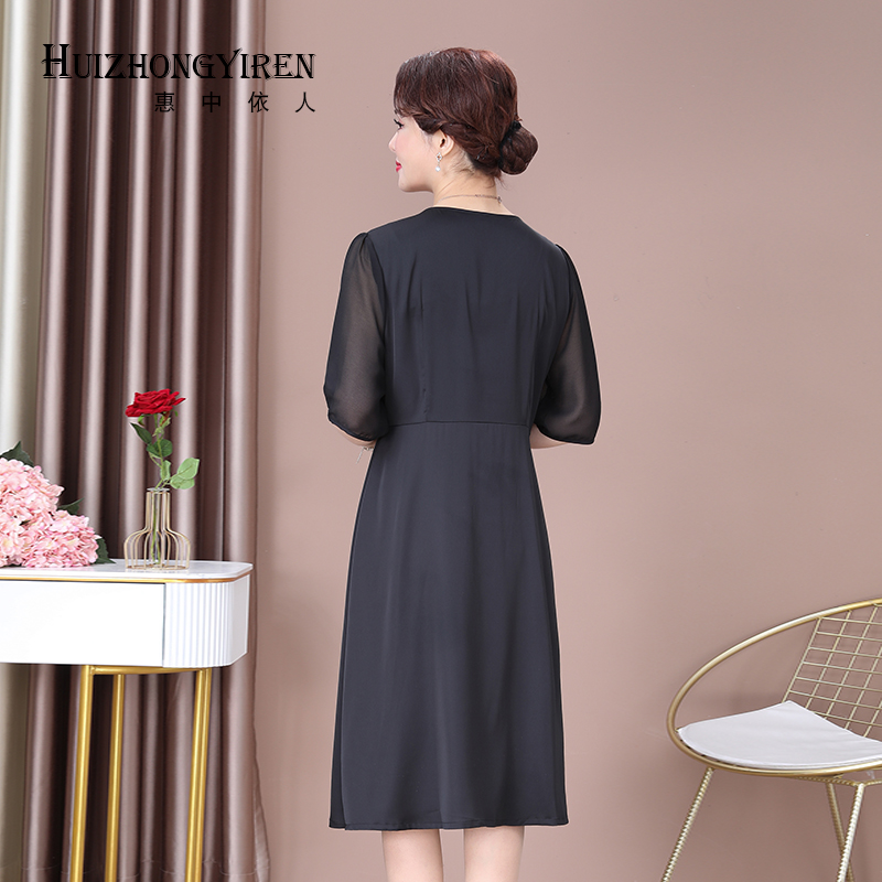 Lady Chiffon dress women's spring and summer high-end foreign school quality 2021 new wide Mrs age-reducing middle-aged mother outfit