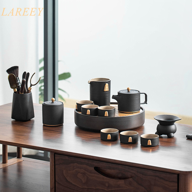 Splendid black pottery tea set tea pot Six gentlemen Splendid black pottery tea set Round tea tray Splendid black pottery tea set Square tea tray Splendid black pottery tea set Round tea tray full set Splendid black