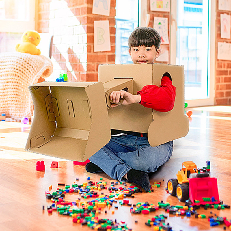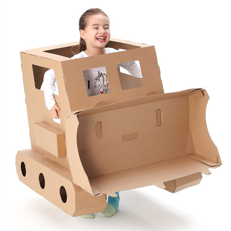Carton manual manufacturing bulldozer excavator DIY color seat assembly cardboard box engineering model toy