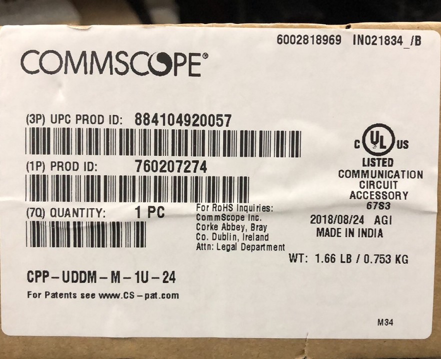 COMMSCOPE Cape 6 class 760237040 Air rack CPP-UDDM-SL-1U-24 port wiring frame