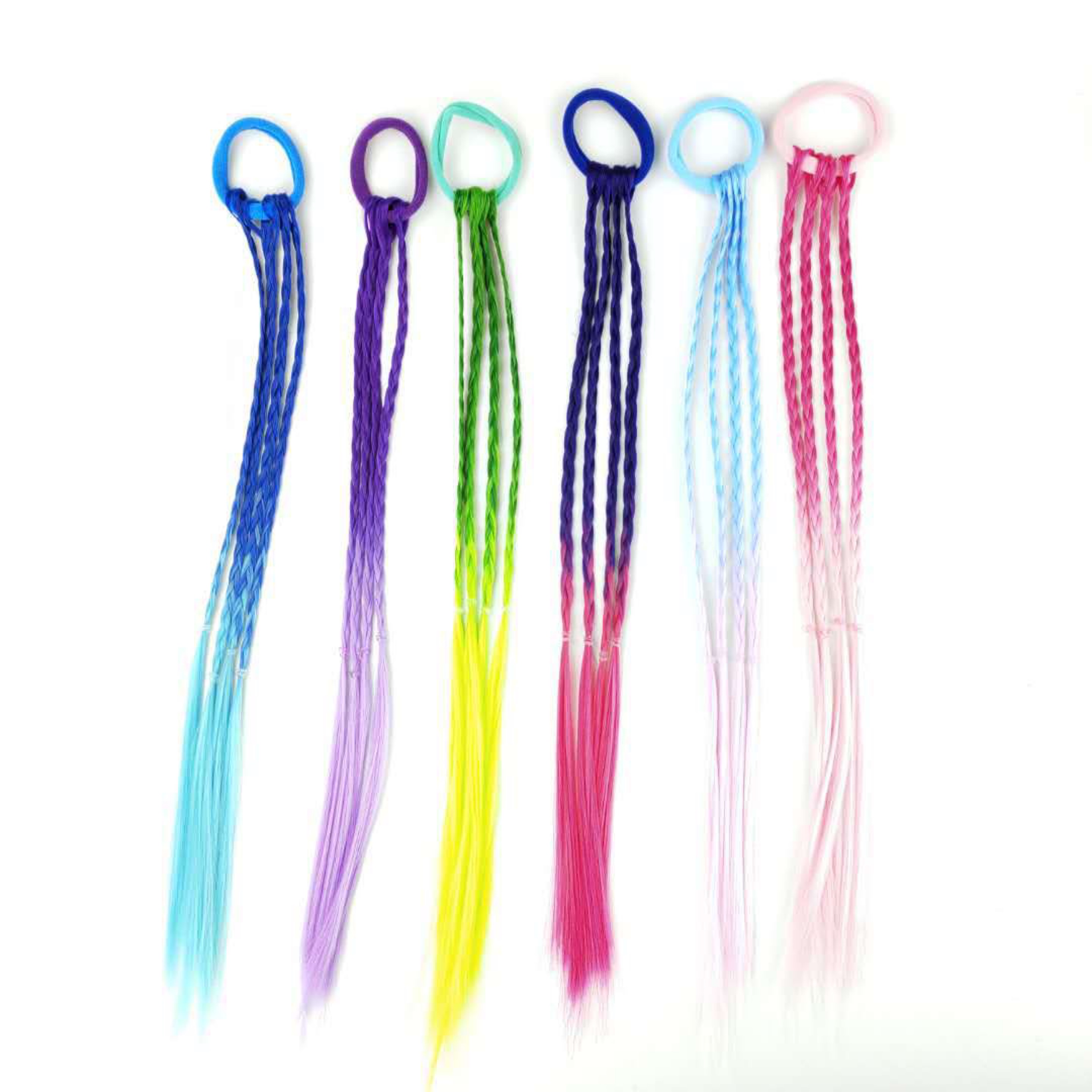 Girls braided rope tied hair elastic ponytail braided hair color braids children dirty braided rope hair accessories hair ring wig female