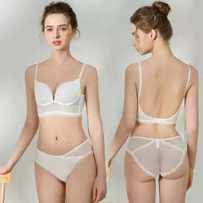 U-shaped deep V beauty back underwear women's summer invisible gathering small chest thickened rimless bra lace anti-sagging bra