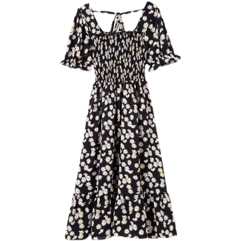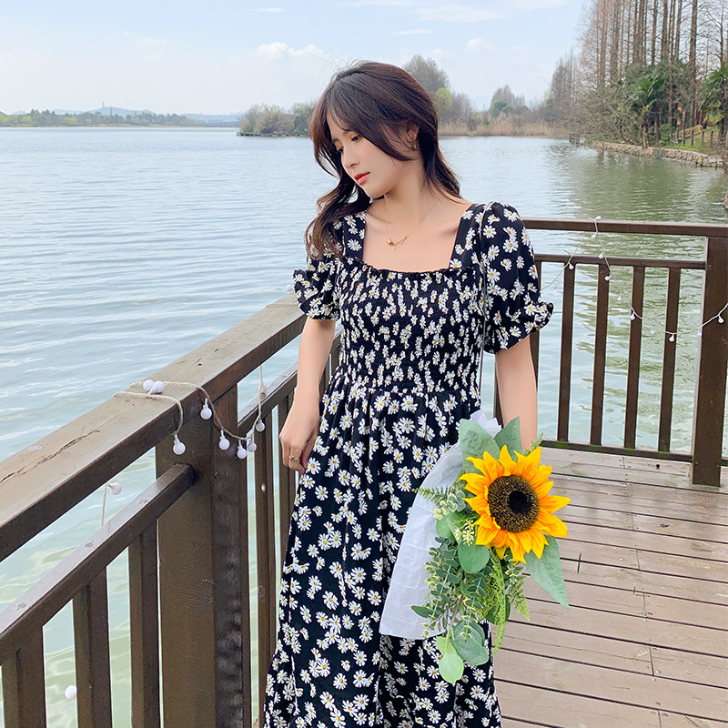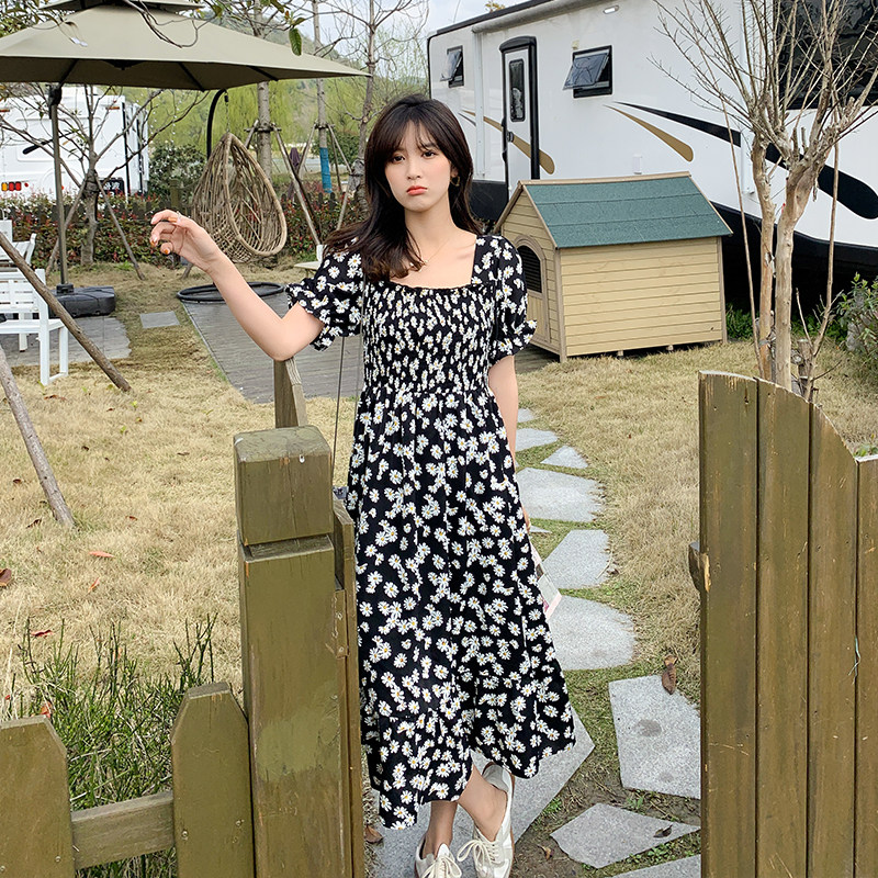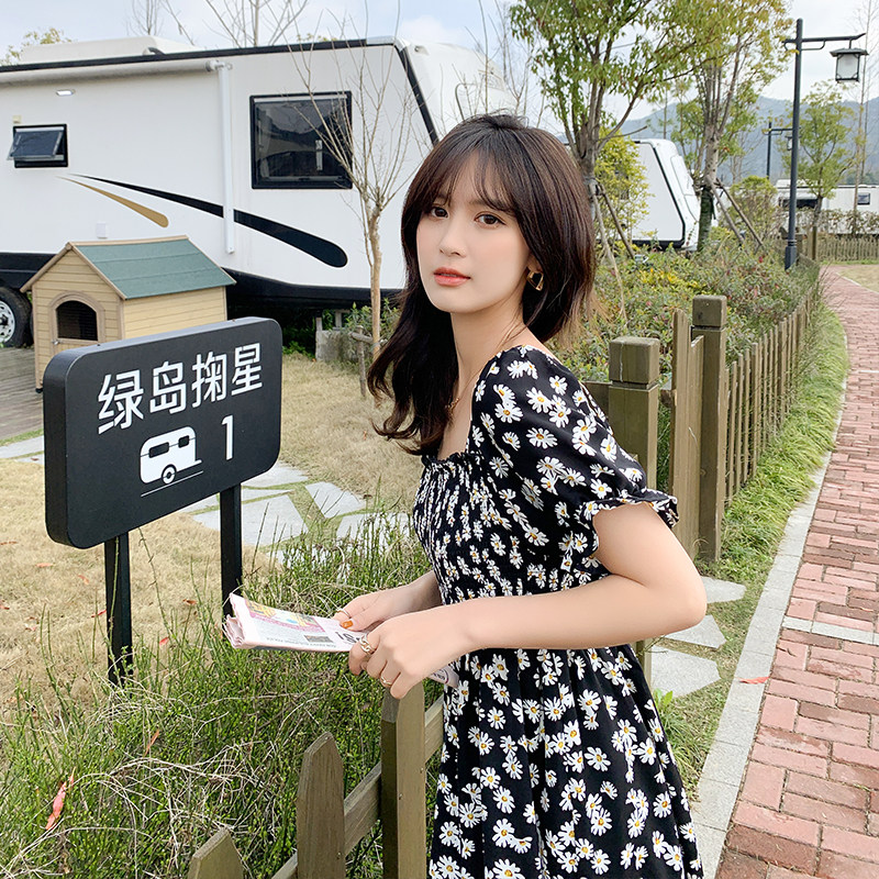 Large size women's clothing in the summer of 2021 the new fat sister loose thin belly cover-up square collar floral small daisy dress
