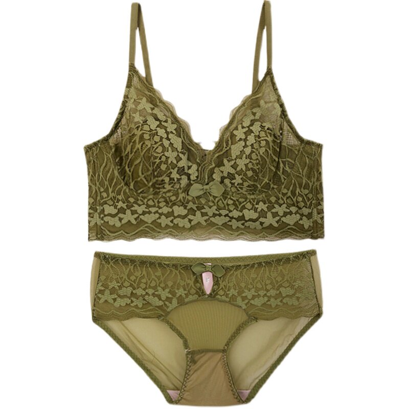 Lace sexy vest style without buckle Triangle cup Large chest display small bra without rims suspender beauty back underwear set