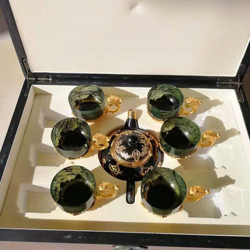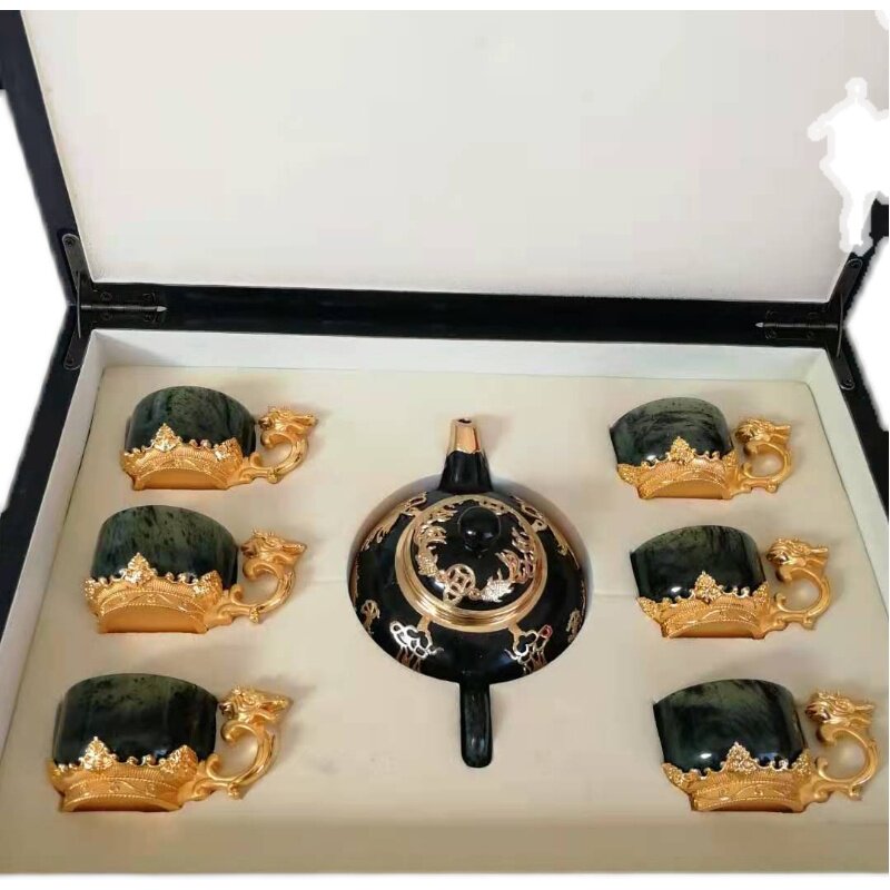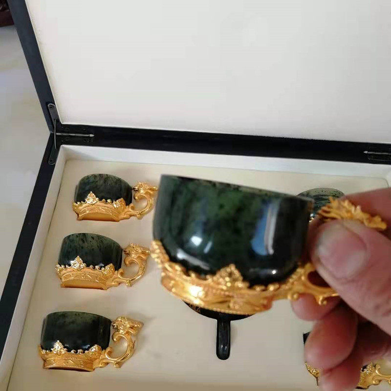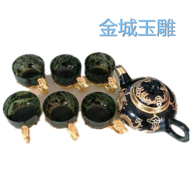 Gansu specialty Jiuquan luminous cup Jinyu Liangyuan tea set Tianshui Wushan gold inlaid jade wine set Tea set Cuiyu