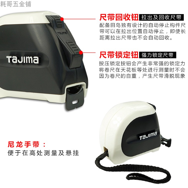 TAJIMA Tajima 5 5m steel thick ruler with double-sided scale automatic locking nylon tape measure functional metric ruler