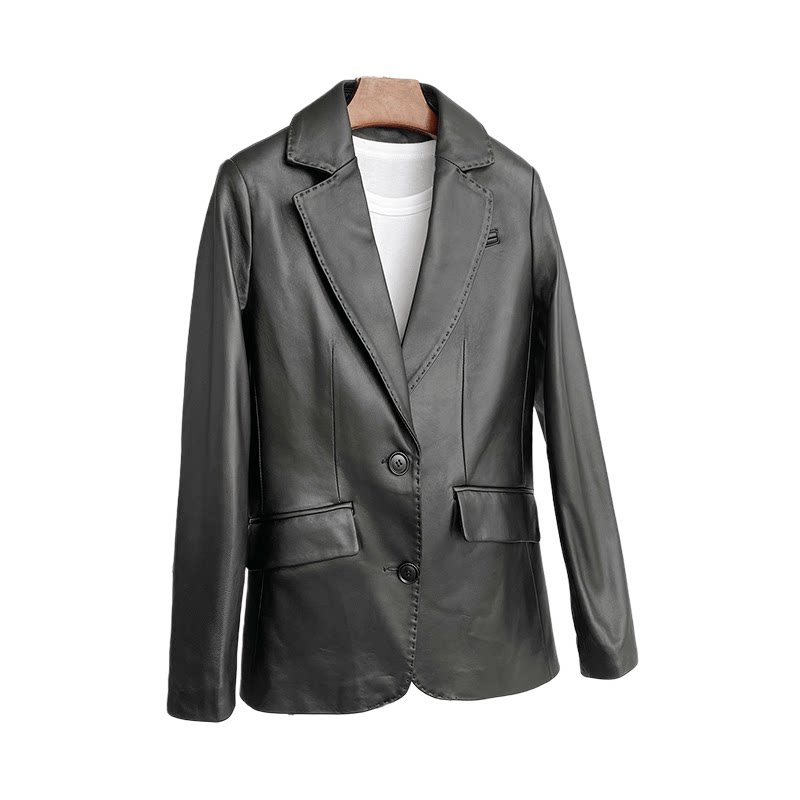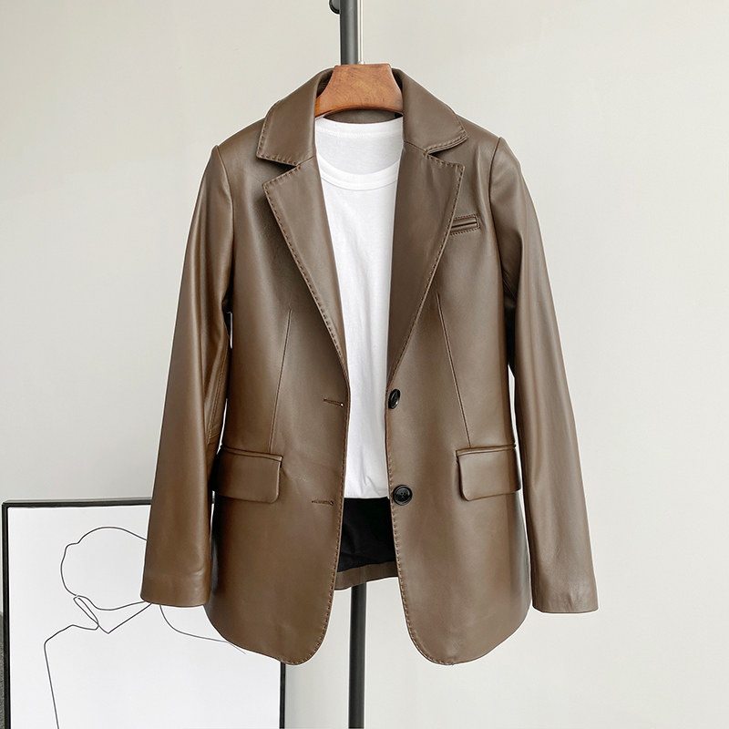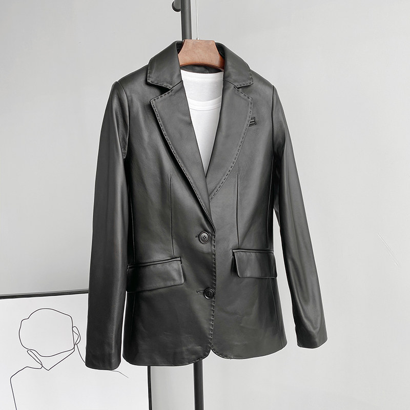 High-end European goods 2021 Spring new Hainen sheep leather leather leather clothes in long version Korean version jacket suit jacket woman