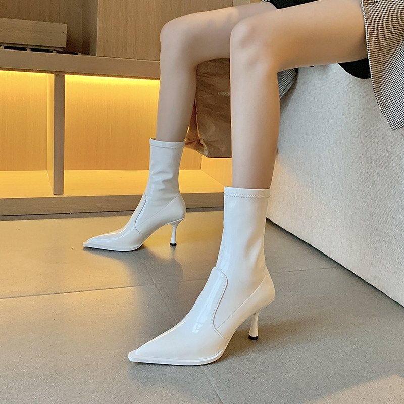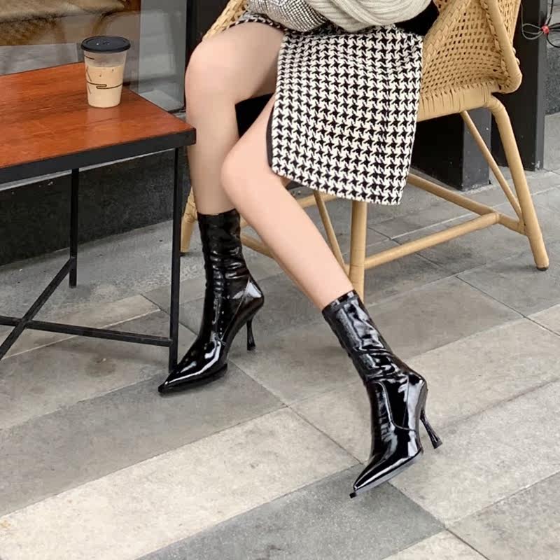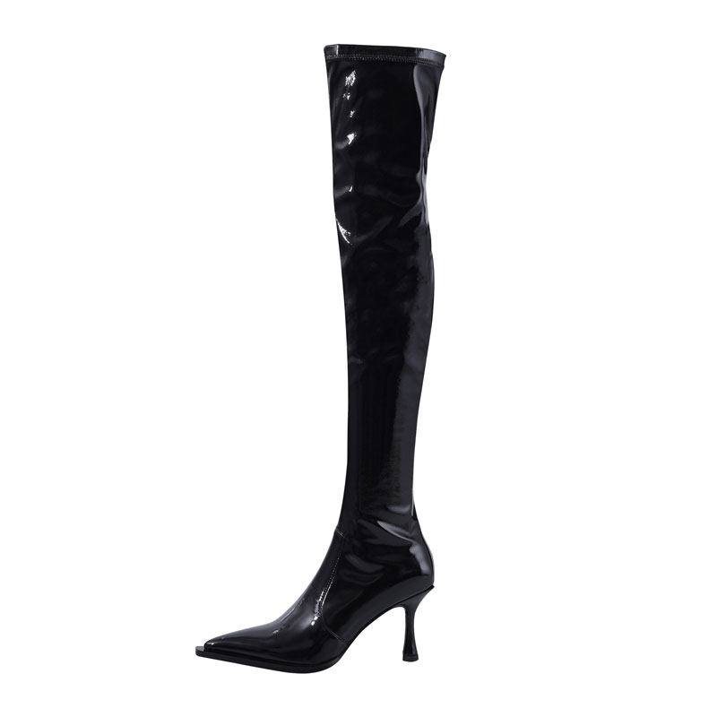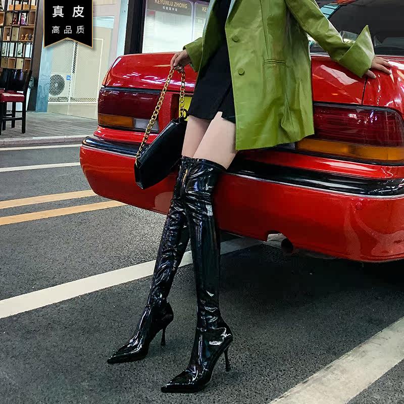 Net red paint leather over knee long boots female leather autumn boots brightness jazz jazz dance high heels tip