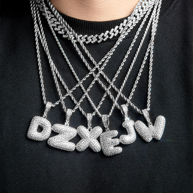 ICEGANG personality custom letters full of drilling bubble Europe and the United States hip hop trend Guotide DIY necklace pendant micro-inlaid