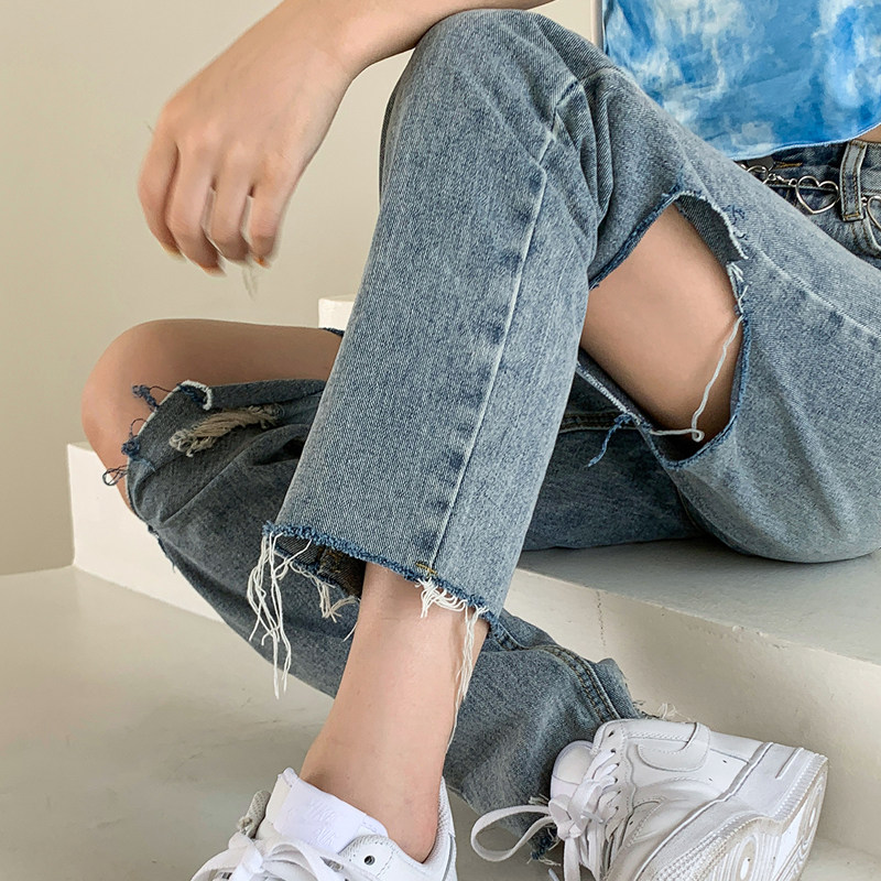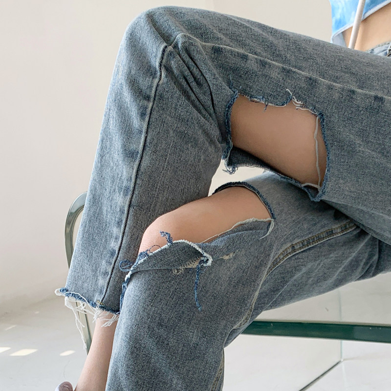 Ripped jeans women's straight loose high waist thin pants fat sister plus size women's autumn clothing 2022 new trend