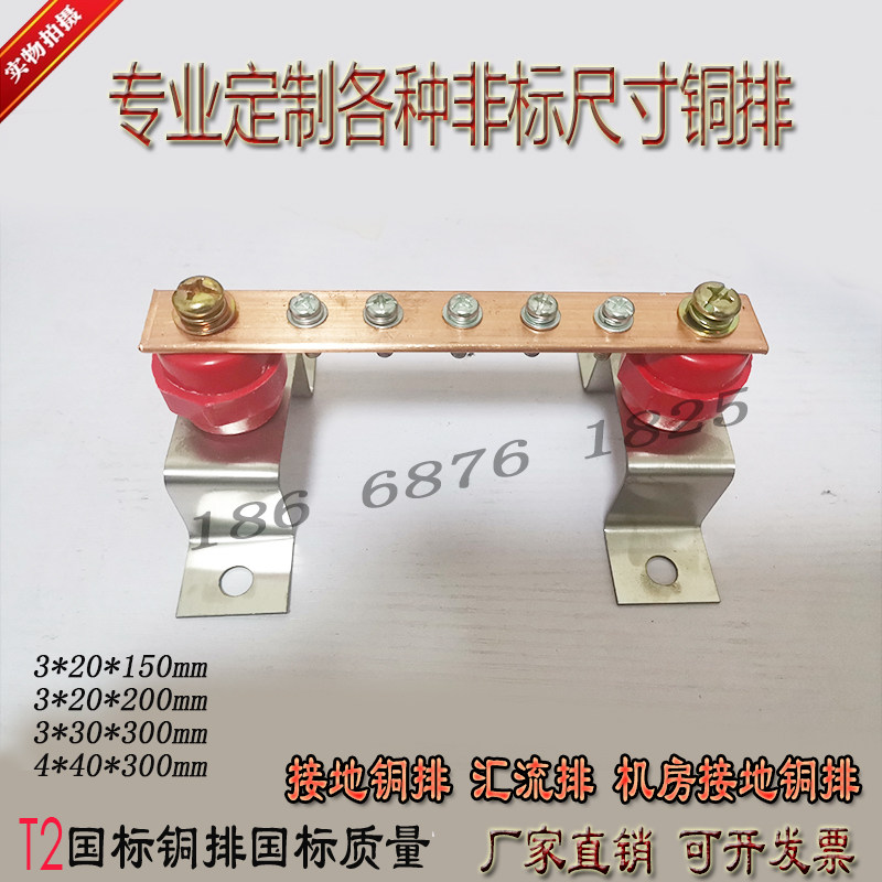 T2 tinned grounding copper bar wiring bar orange insulator plus stainless steel bracket busbar computer room grounding bar