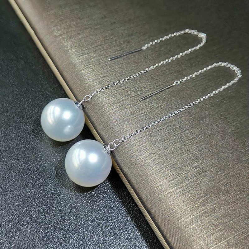 Australian Nanyang White Pearl Ear Refined Natural Seawater Pearl Earrings Nail 18K Gold Round Silver Blue Cold Light Earrings
