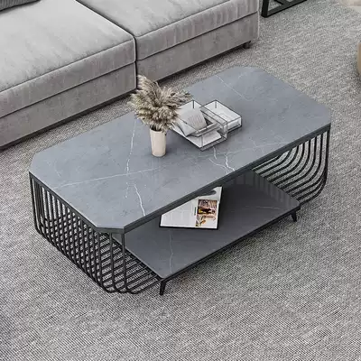 Light luxury modern household rock board living room rectangular large tea table small apartment Nordic simple marble side tea table