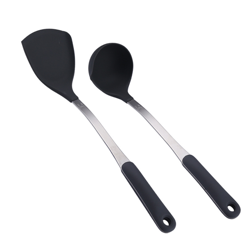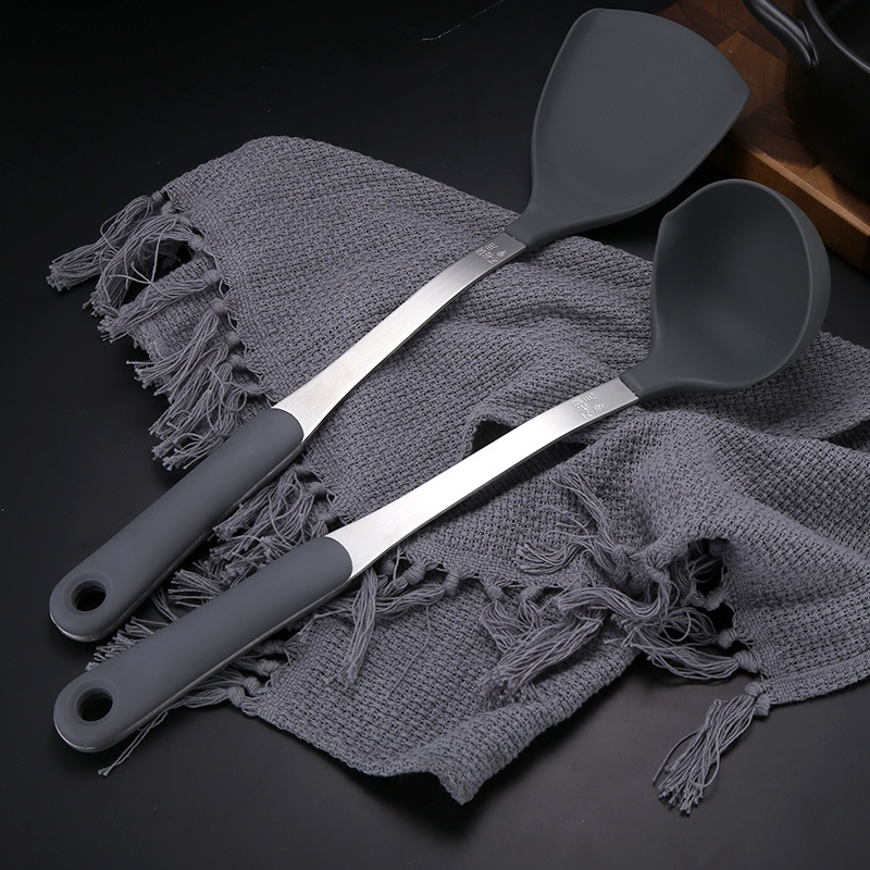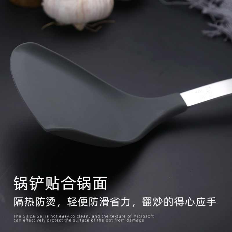 Non-stained silicone Silicone Shovel Fried Vegetable Shovel High Temperature Resistant Home Stainless Steel Cookware Special Protective Pan Silicone Pan Shovel Suit