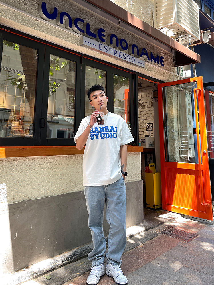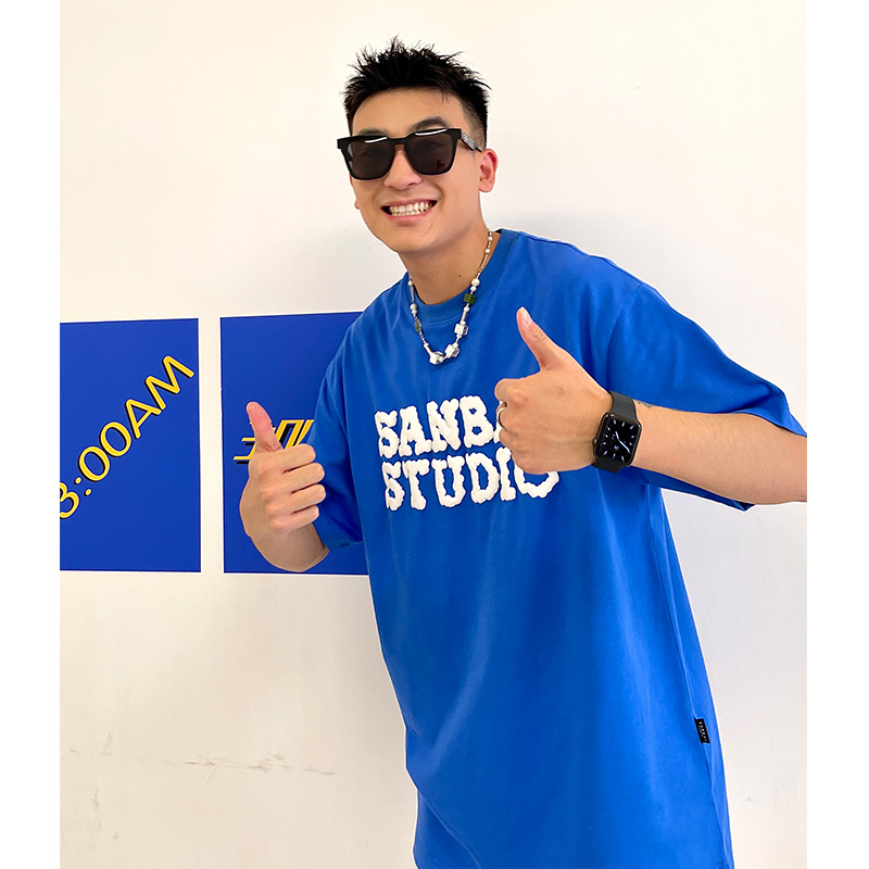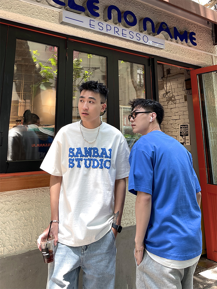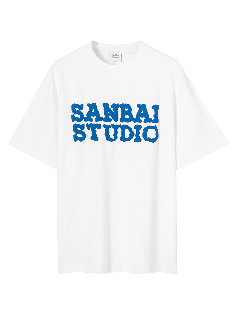 SANBAI Sanbai homemade blue short-sleeved tide brand ins super hot foam printing T-shirt men's loose T-shirt