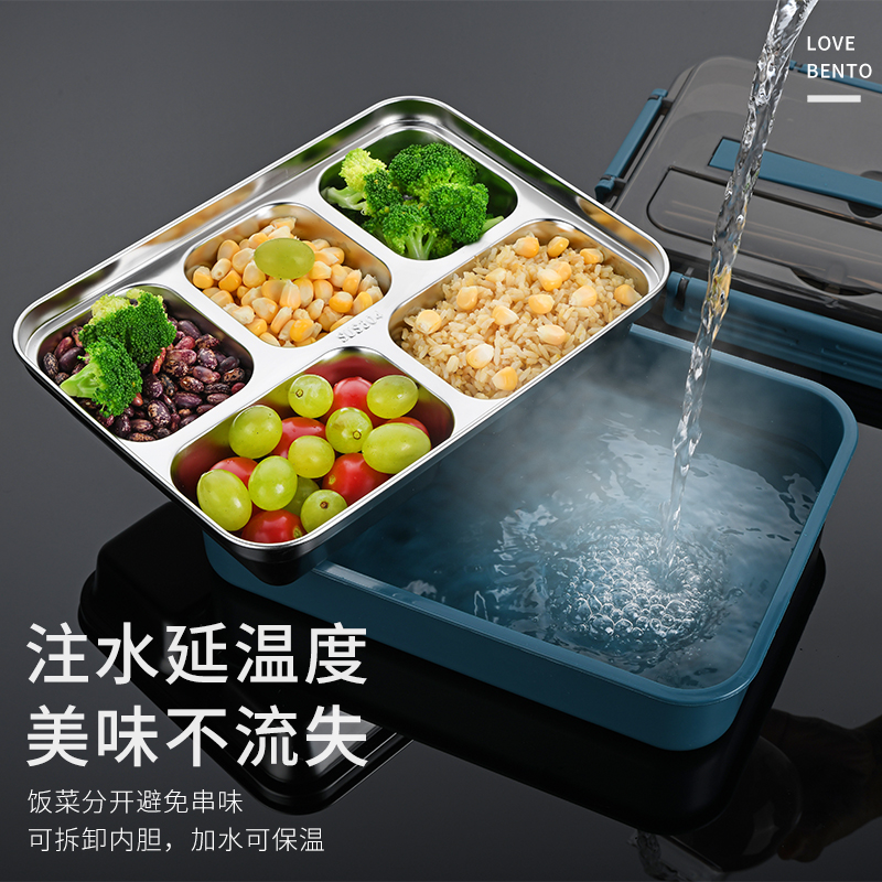 304 stainless steel student lunch box insulation large capacity lunch box Office workers portable separation type lunch box handbag