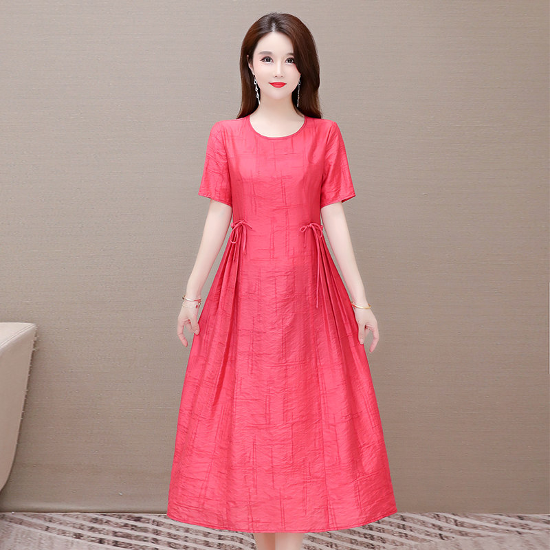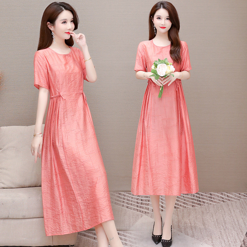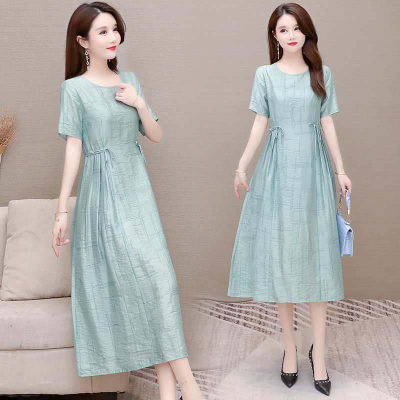 Round Collar Ocean Dress Summer Dress 2021 New Women's Fit Temperament High-end Famous Hime Wind Over Knee Snowspun Long Skirt