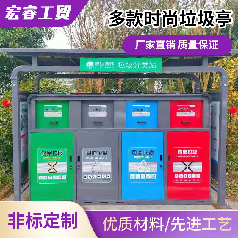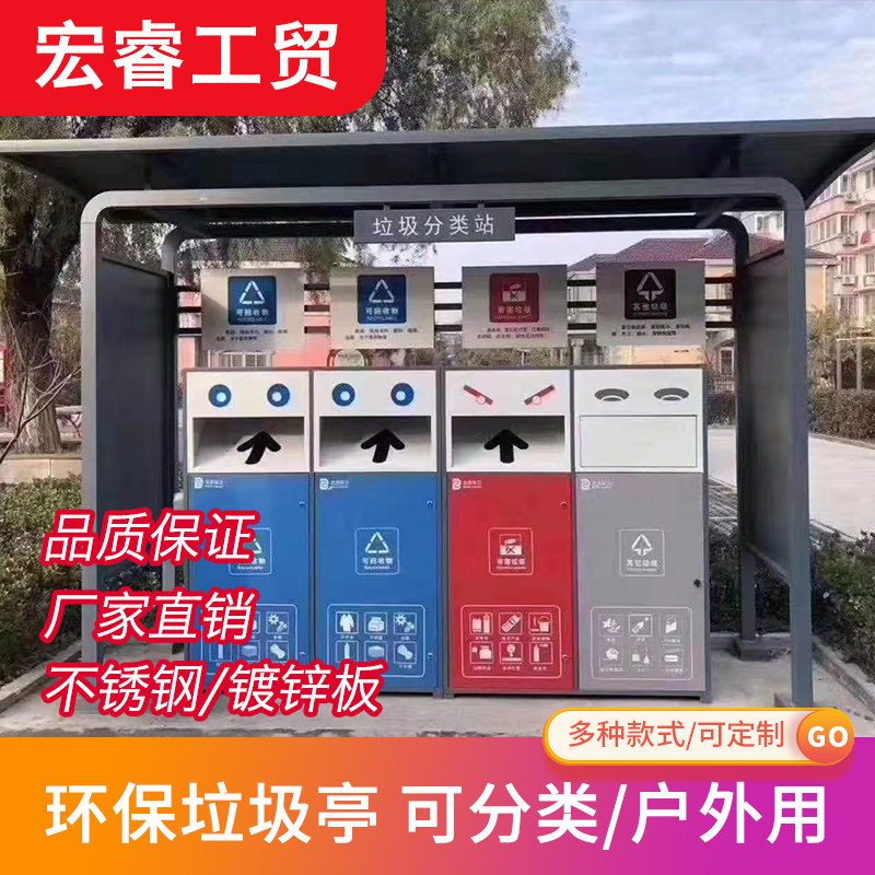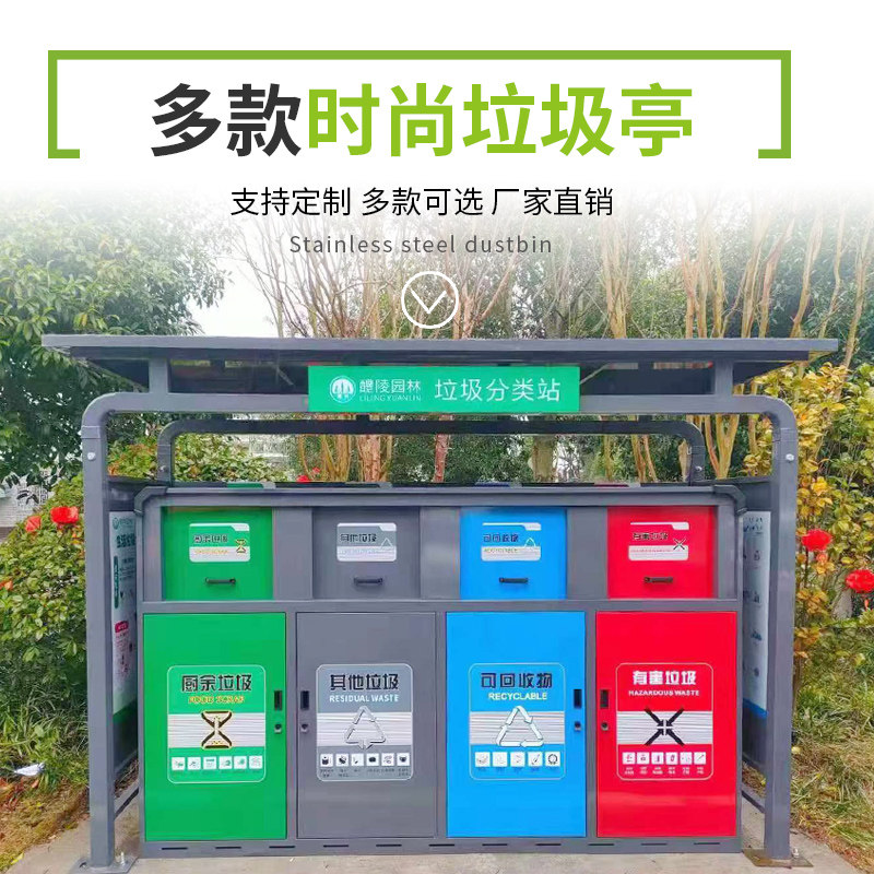 Customized outdoor garbage sorting collection booth garbage house garbage room sanitation kiosk stainless steel garbage kiosk propaganda board