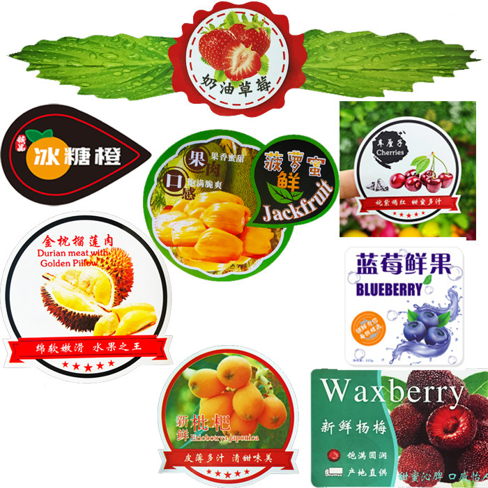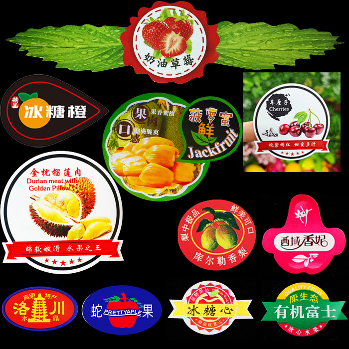 Apple, orange, strawberry, cucumber, jackfruit, durian, dinosaur egg, snake, limang, fruit label, self-adhesive trademark customization