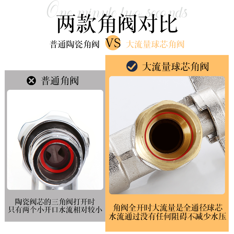 304 stainless steel 4 minute large flow-blue 304 stainless steel 4 minute large flow-red 304 stainless steel 4 minute large flow-hot and cold 2 fit full copper 4 minute large flow angle valve-blue full copper