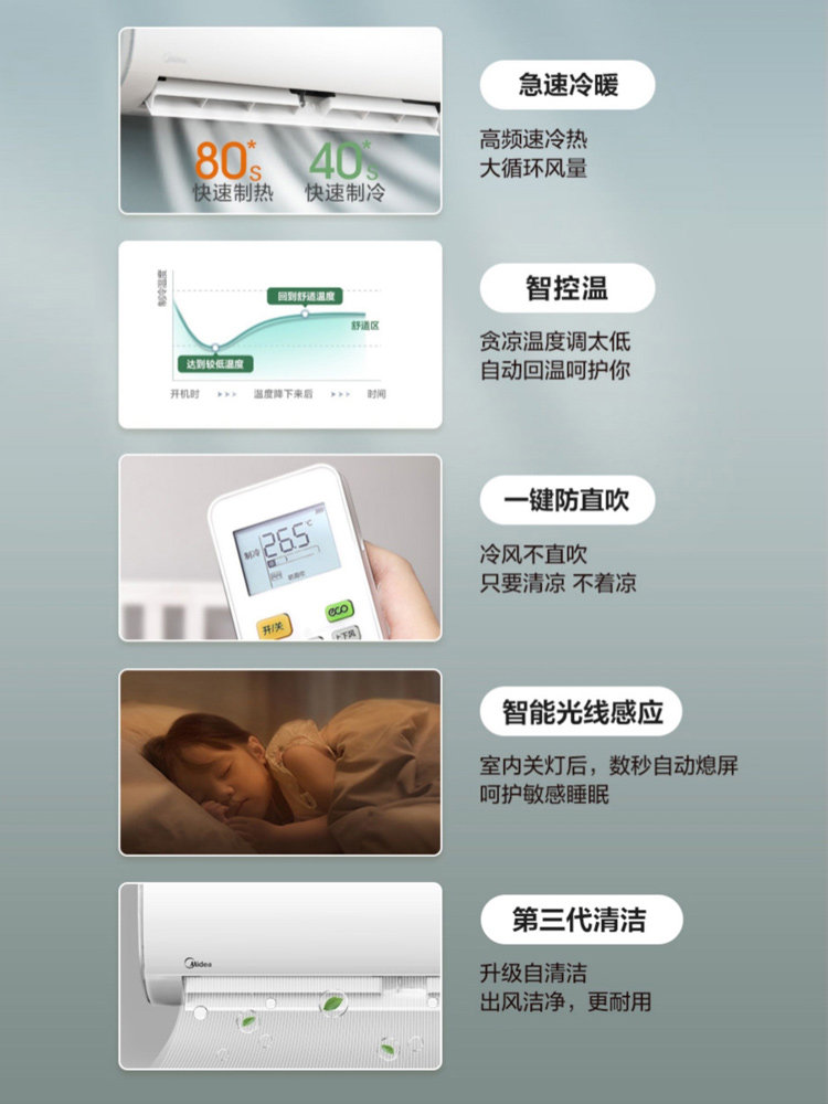 Midea calm star air conditioner 2 hp wall-mounted air conditioner inverter heating and cooling dual-use power saving living room household commercial wall-mounted PC400