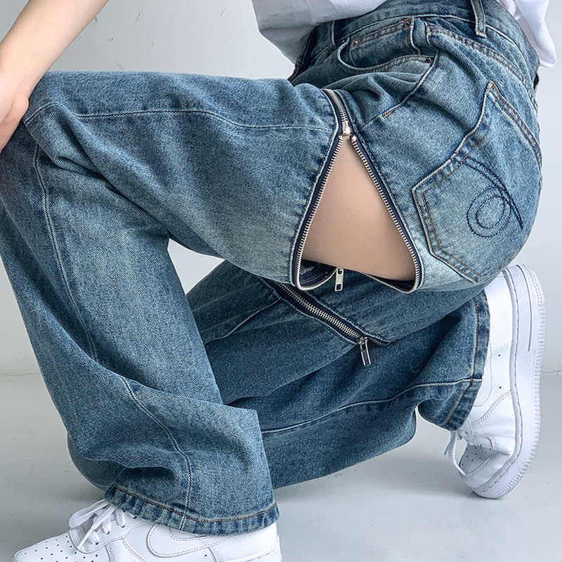 The new tide of the crack jeans is loose high waist and thin pants fat sister clothing in autumn 2023