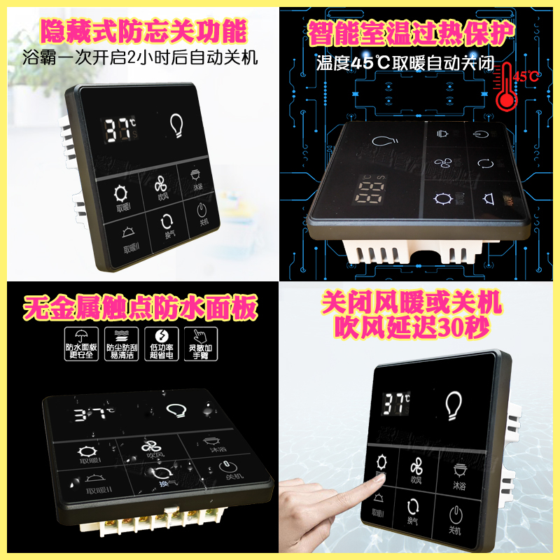 Bath Bath smart touch screen switch air heating 5 in 5 open panel bathroom 86 wired waterproof universal