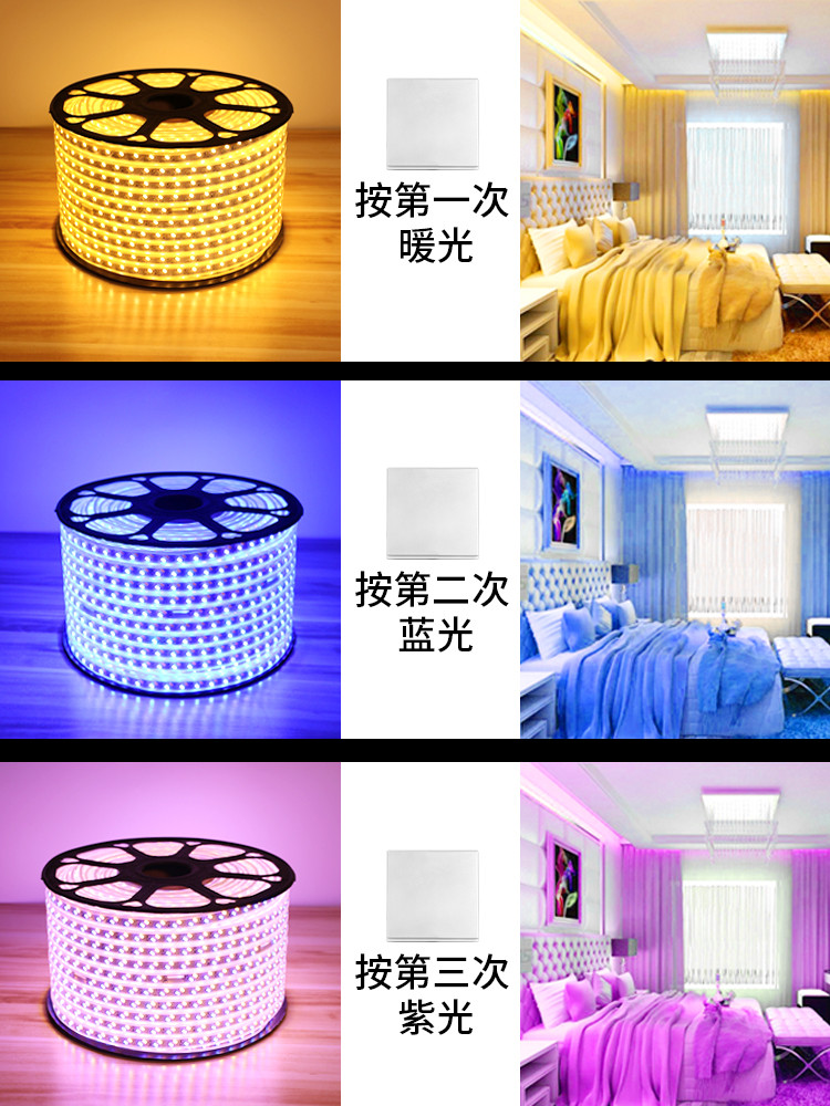 LED light strip living room household suspended ceiling 220V three-color soft light strip outdoor highlight strip light strip waterproof line light
