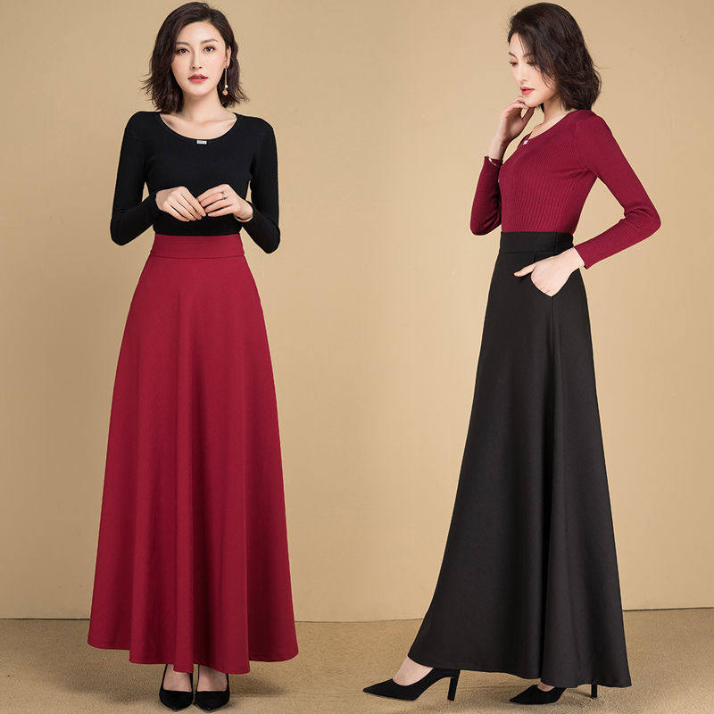 Half-length long skirt, large swing skirt, word skirt, high waist and thin black all-match Korean version large size ladies dancing long skirt