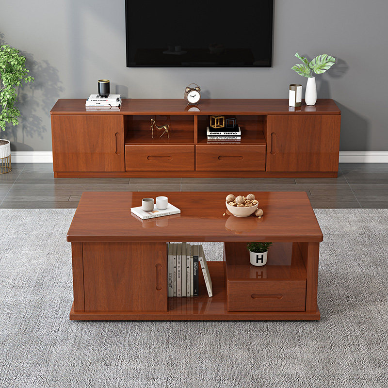 Nordic solid wood coffee table TV cabinet combination furniture new set modern minimalist small apartment floor TV cabinet