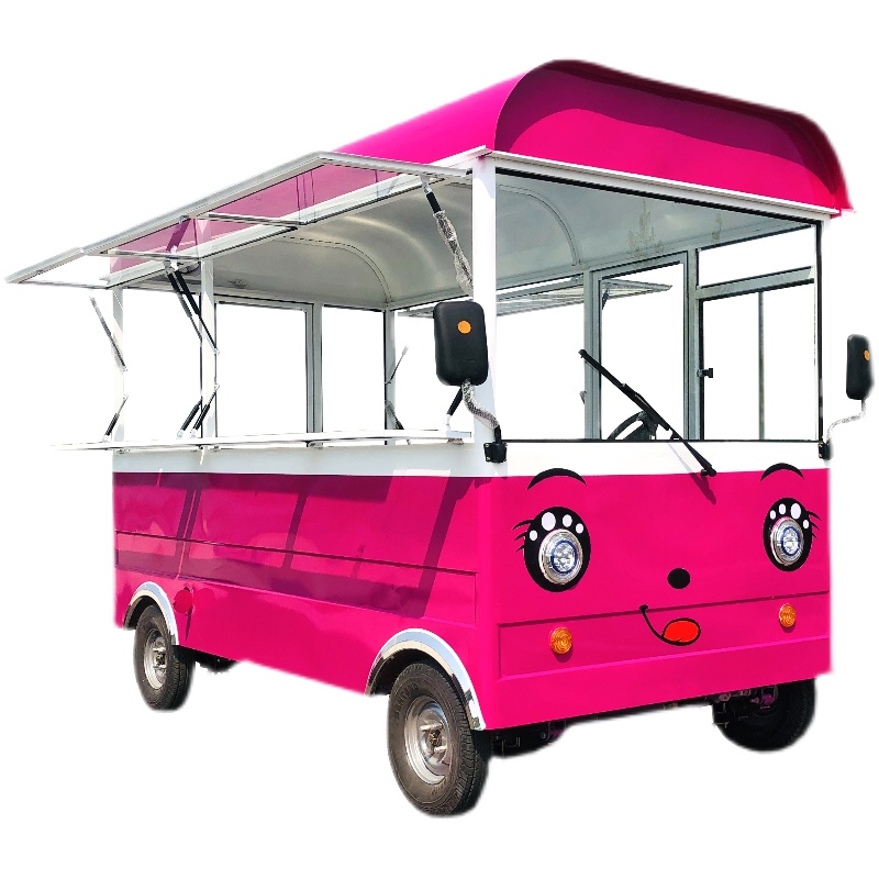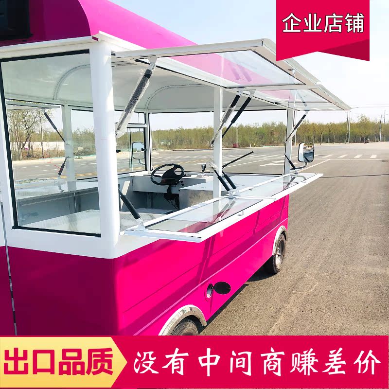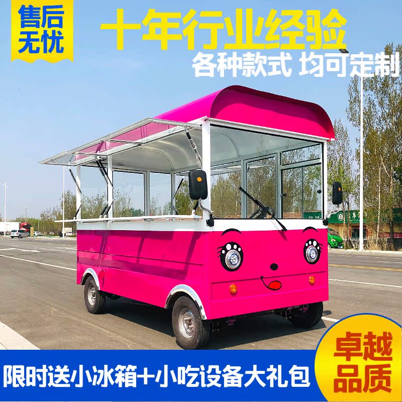 Snack Cart Multifunctional Food Truck Electric Four Wheel Mobile Stall Breakfast Fast Food Fried Skewers Deli Marinated Vegetable Fried Cart