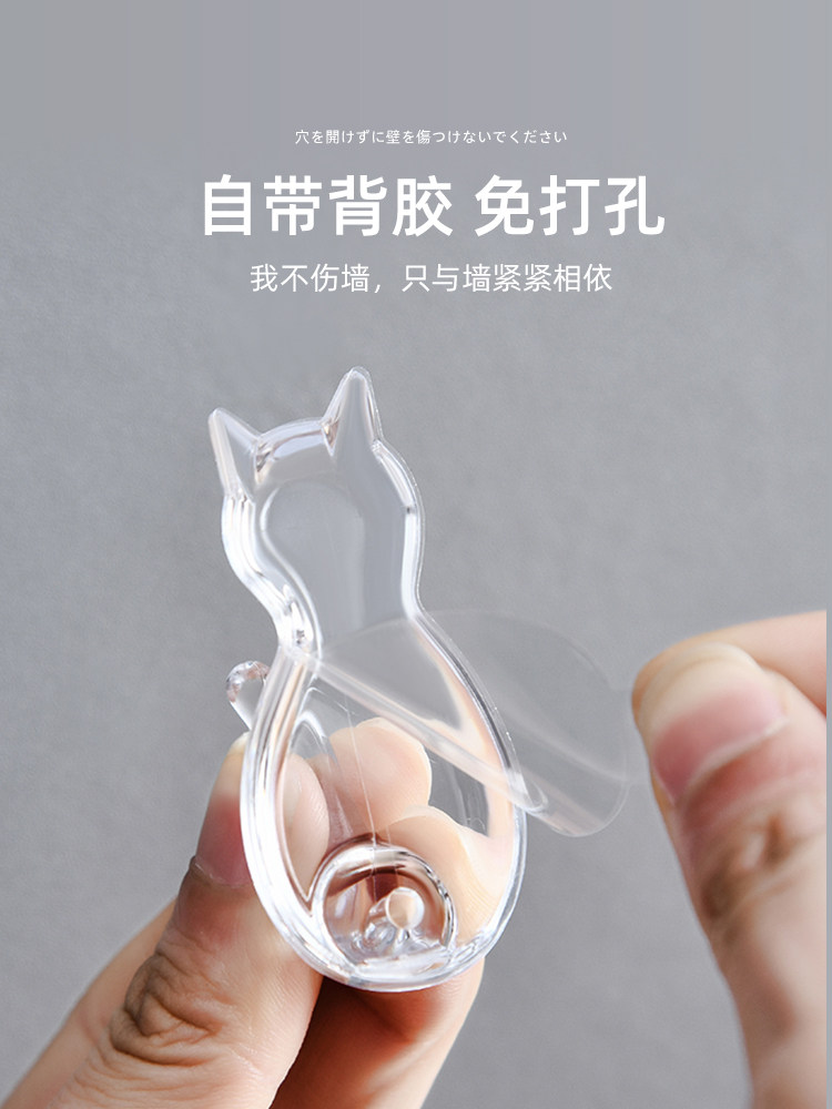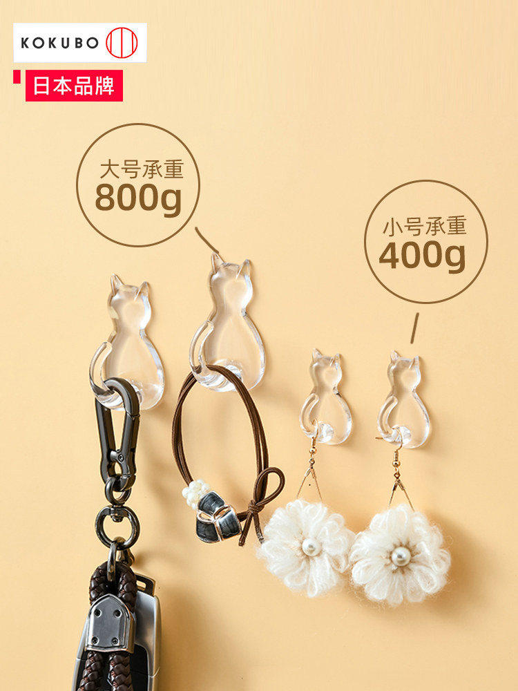 Japan KOKUBO transparent cat small hook free punching bathroom kitchen wall hook seamless strong sticky hook