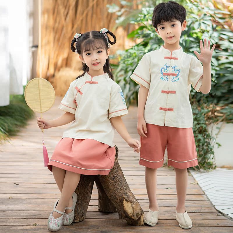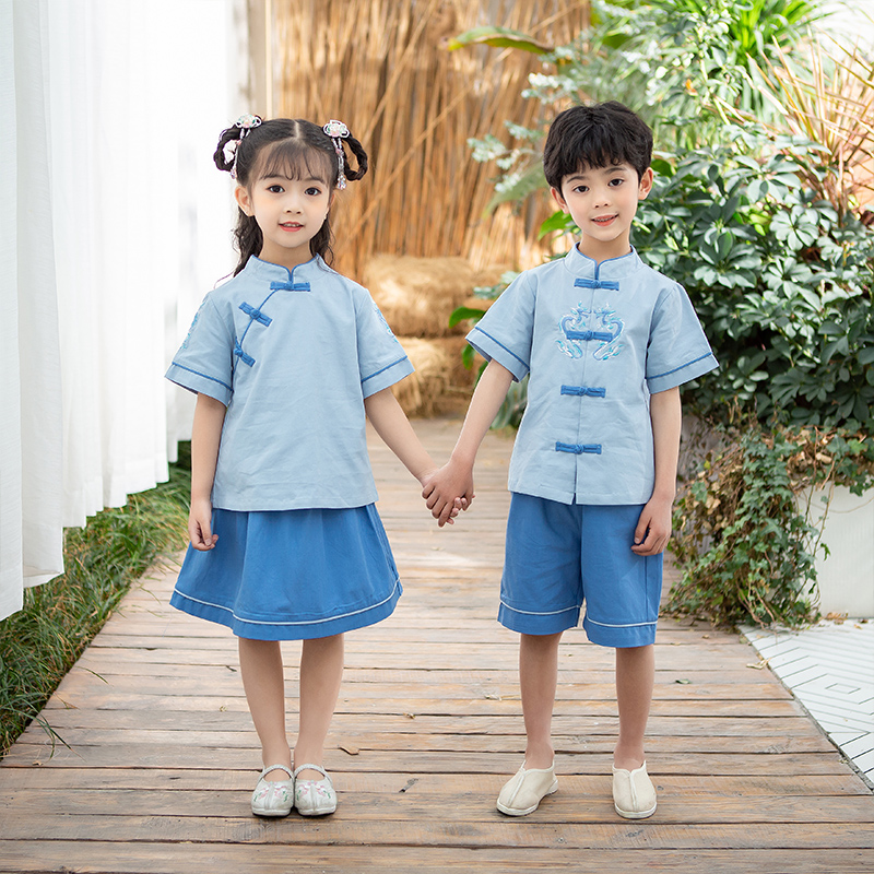 Summer Boys Han-clothed Girls Chinese Fashion Tangwear Primary School Clothes Sixty-One Children Show Clothes