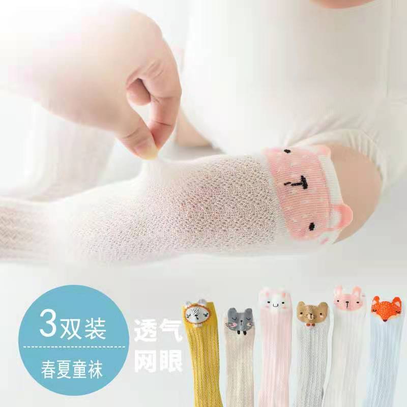 Infant Summer mesh Anti-mosquito long cylinder Sox newborn baby men and women Plot Cartoon Breathable Comfort Socks 3 Double sets