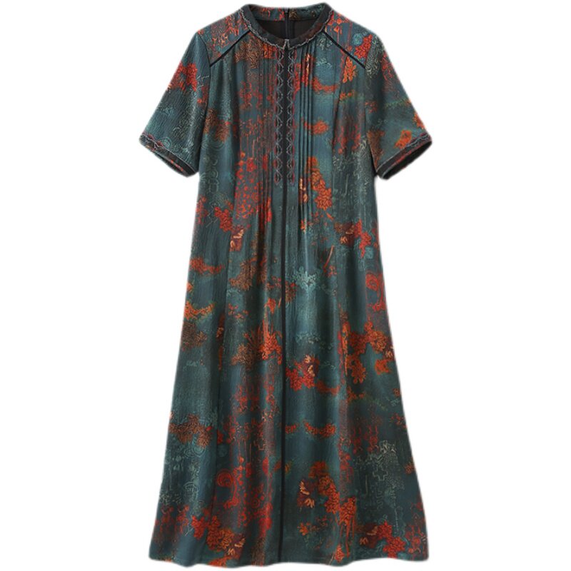 Yisirong Xiangyun yarn silk dress women 2021 spring summer new elegant fashion heavy mulberry silk A-line skirt