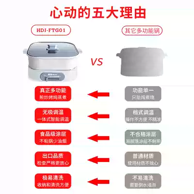 Huidong family multi-function cooking pot Electric hot pot Household breakfast electric barbecue meat pot Net celebrity pot all-in-one fast cooking pot