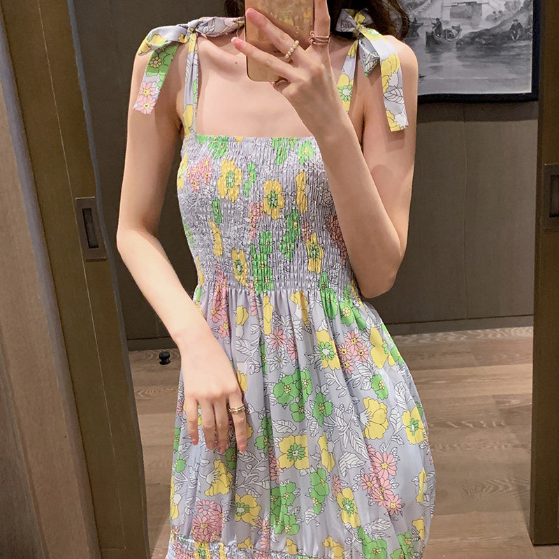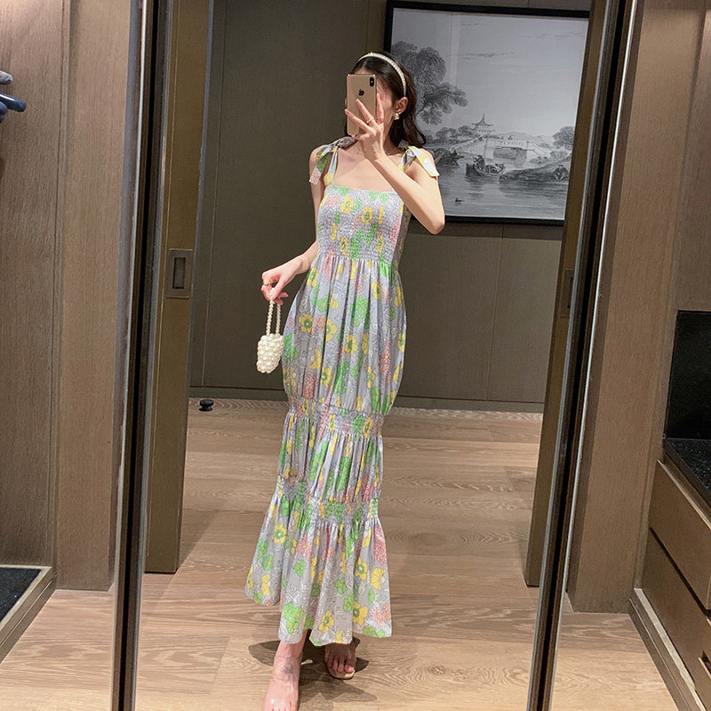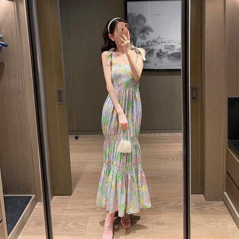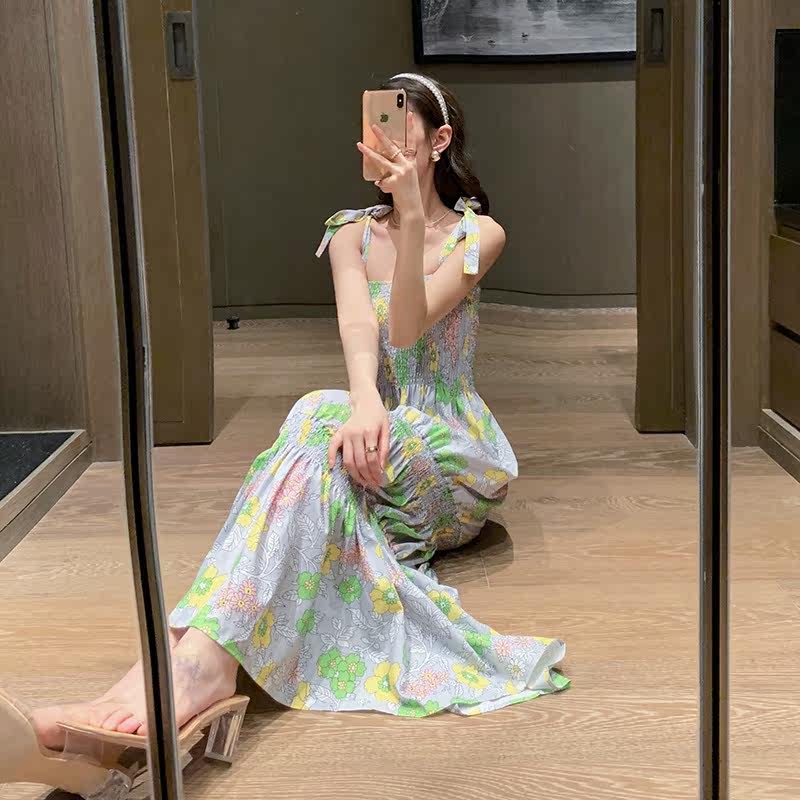 Beach dresses Women Summer 2021 new Sanya seaside holiday dresses Broken Flowers Harnesses Long Skirts and Ankle First Love Dress-Taobao