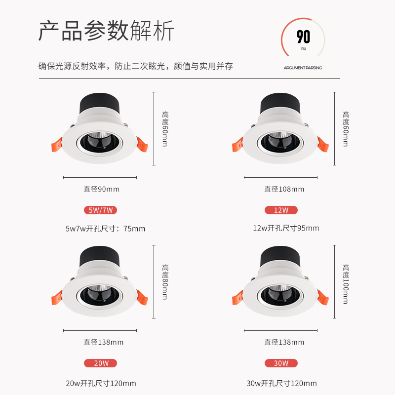 7w stepless dimming (drilling 70-80mm) remote control dimming 30w neutral light (drilling 120mm) 4000k 12w three-tone dimming (drilling 95mm)
