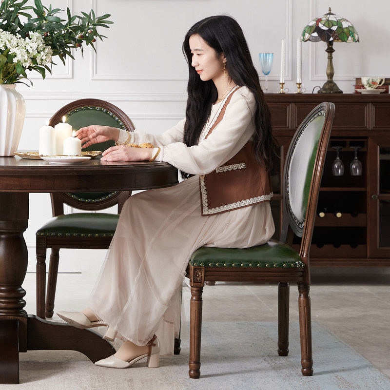 American dining chair Xiaomei country style all solid wood walnut oil wax leather dining room log dining chair